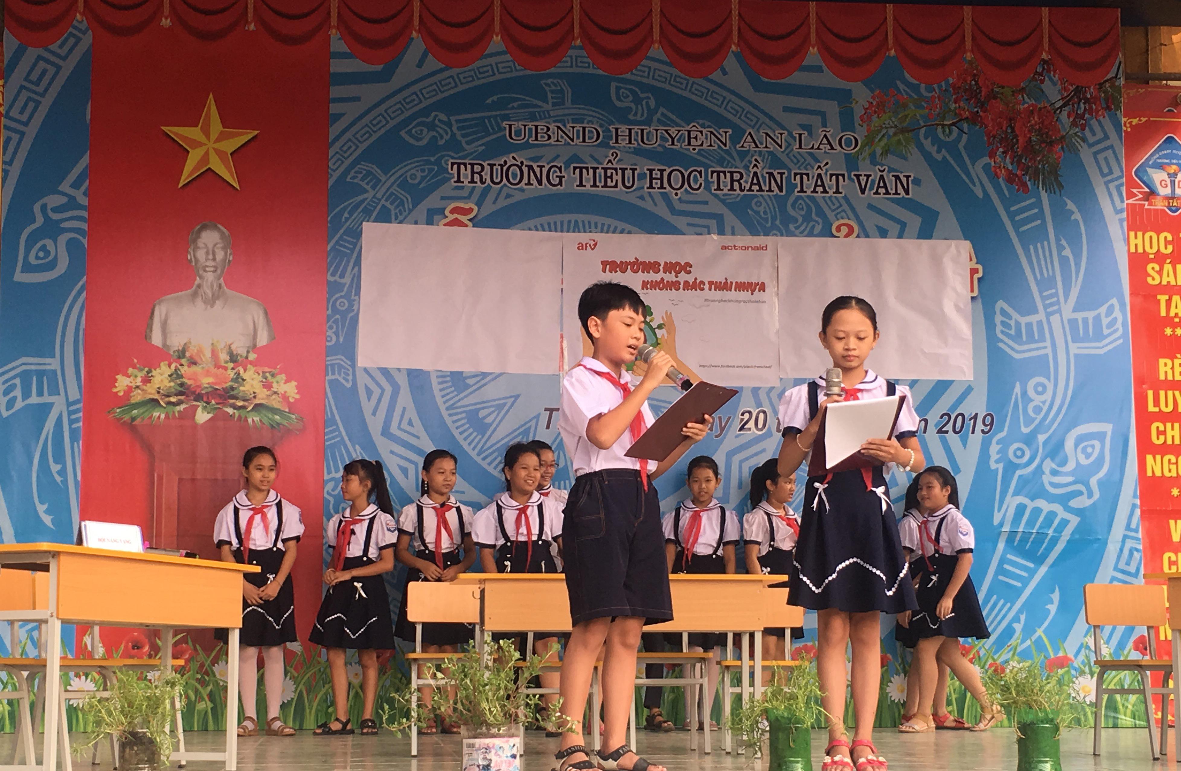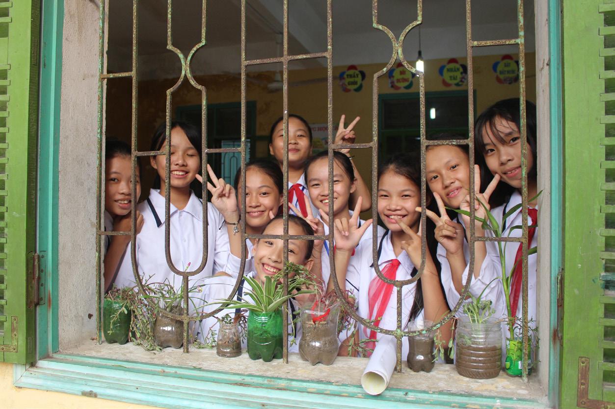 Vào năm 2019 và 2020, AAV và AFV đã triển khai chiến dịch ‘Trường học không rác thải nhựa’ nhằm thay đổi nhận thức và hành vi của học sinh về tác hại của rác thải nhựa thông qua việc ngừng sử dụng đồ nhựa dùng một lần trong một tuần, một tháng hoặc một năm. In 2019 and 2020, AAV and AFV launched the ‘Plastic-free Schools’ campaign to change students’ perceptions and behaviour about the adversities of plastic waste by stopping using single-use plastic in 1 week, 1 month or 1 year. “Học sinh của Trường THCS Dũng Tiến chủ yếu là học sinh vùng sâu vùng xa nên nhận thức của các em về vấn đề này vẫn còn nhiều hạn chế. Từ khi được dự án hỗ trợ, học sinh và giáo viên đã phát động mỗi tuần một ngày không rác thải nhựa. Nhiều gia đình sau khi được nghe các con chia sẻ lại cũng chuyển sang sử dụng đồ mây tre đan và thuỷ tinh thay vì chai, lọ nhựa như trước,” Thầy Nguyễn Minh Tuấn - Giáo viên Trường THCS Dũng Tiến chia sẻ. “Students of Dung Tien Secondary School reside mainly in remote areas, so their awareness on this issue is still limited. Owing to the project support, students and teachers now launch a plastic-free day every week. Many families, after hearing their children’s sharing, also switched to bamboo and rattan products and glass instead of plastic bottles and jars like before,” shared Teacher of Dung Tien Secondary School Nguyen Minh Tuan.46 47