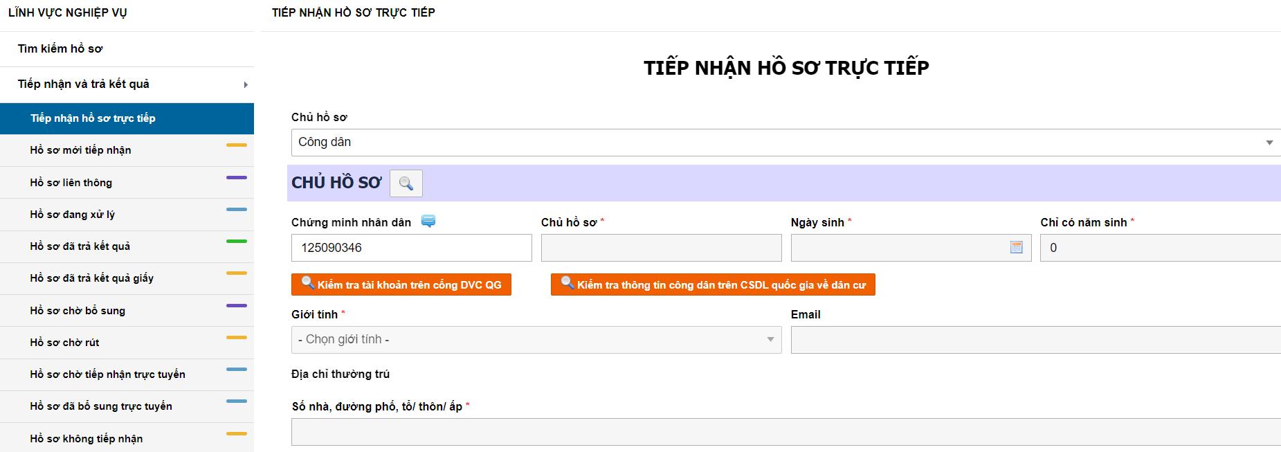Tiếp nhận hồ sơ trực tiếp