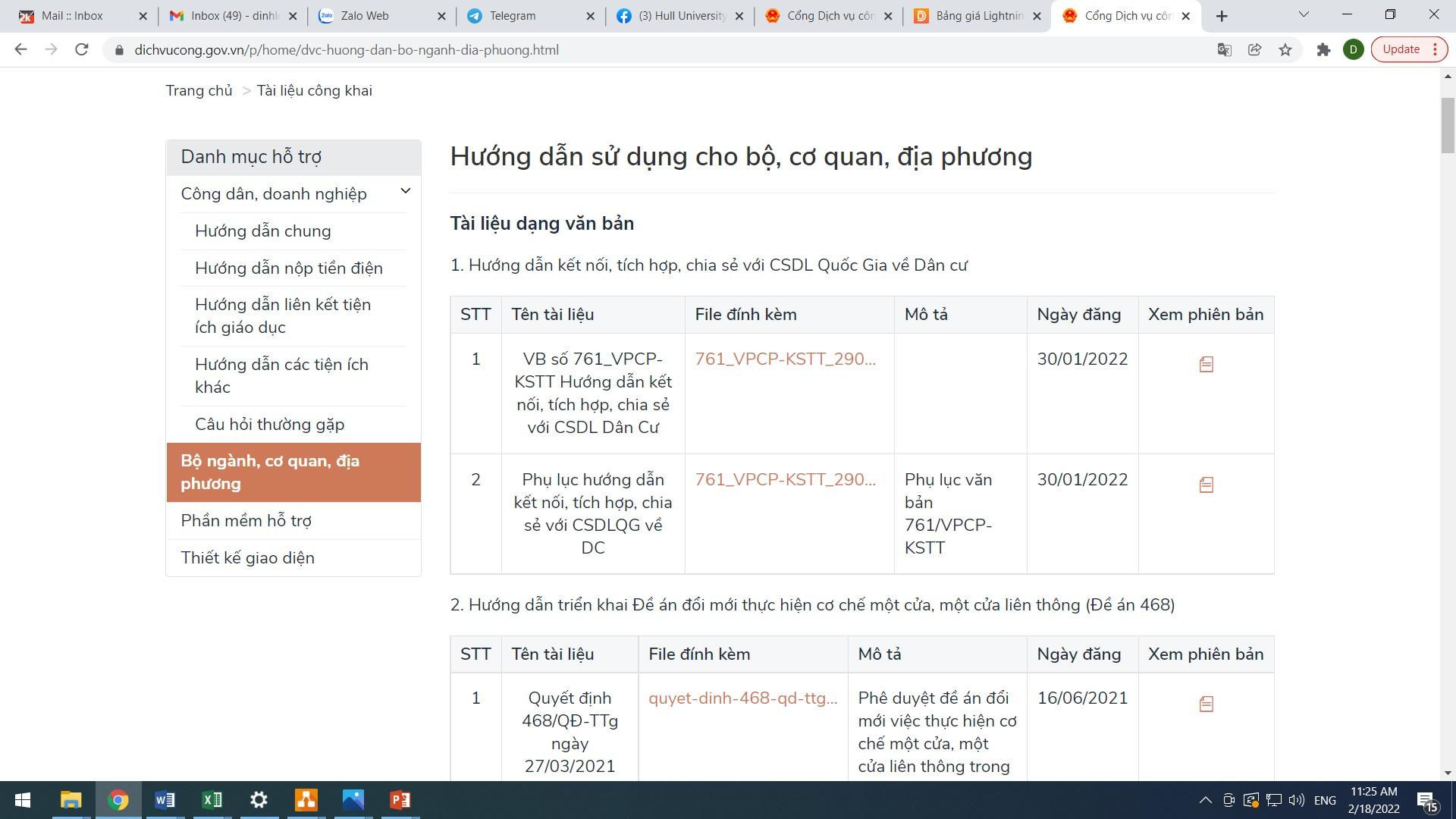 Chuẩn hóa TTHC, DVC – số hóa Đồng bộ các danh mục dữ liệu dùng chung của Cổng DVCQG (CSDL quốc gia về TTHC) theo Điều 6, Điều 23 Quyết định số 31/2021/QĐ-TTg; Nâng cấp, hiệu chỉnh Kho dữ liệu của cá nhân, tổ chức, danh mục thủ tục hành chính, Dịch vụ công trên HTTT giải quyết TTHC. Tài liệu hướng dẫn số hóa 9318/VPCP-KSTT ngày 21/12/2021. Nâng cấp các tính năng của Cổng Dịch vụ công tỉnh theo văn bản số ngày 26/4/2022 của Bộ Thông tin và Truyền thông hướng dẫn kỹ thuật triển khai Đề án 06 (phiên bản 1.0) Tài liệu hướng dẫn kết nối, tích hợp, chia sẻ tài liệu số hóa 2916/VPCP-KSTT ngày 10/5/2022.