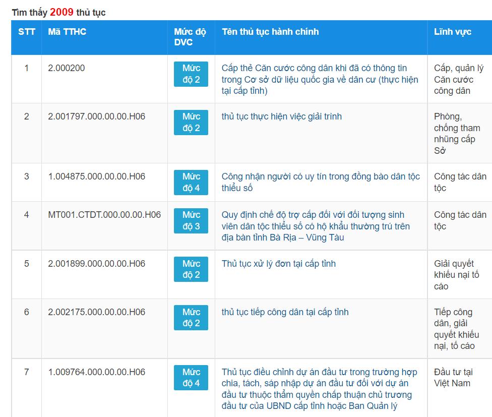 Kết quả TTHC Mã Tên KQ.G15.000031 Giấy khai sinh KQ.G01.000023 Căn cước công dân KQ.G01.000007 Hộ chiếu phổ thông KQ.G15.000007 Phiếu lý lịch tư pháp 1 KQ.G15.000008 Phiếu lý lịch tư pháp 2 KQ.G15.000032 Giấy chứng nhận kết hôn KQ.G15.000039 Trích lục ghi chú kết hôn KQ.G15.000034 Trích lục khai tử KQ.G17.000031 Giấy phép xây dựng (nhà ở riêng lẻ) KQ.G01.000055 Giấy chứng nhận đăng ký xe
