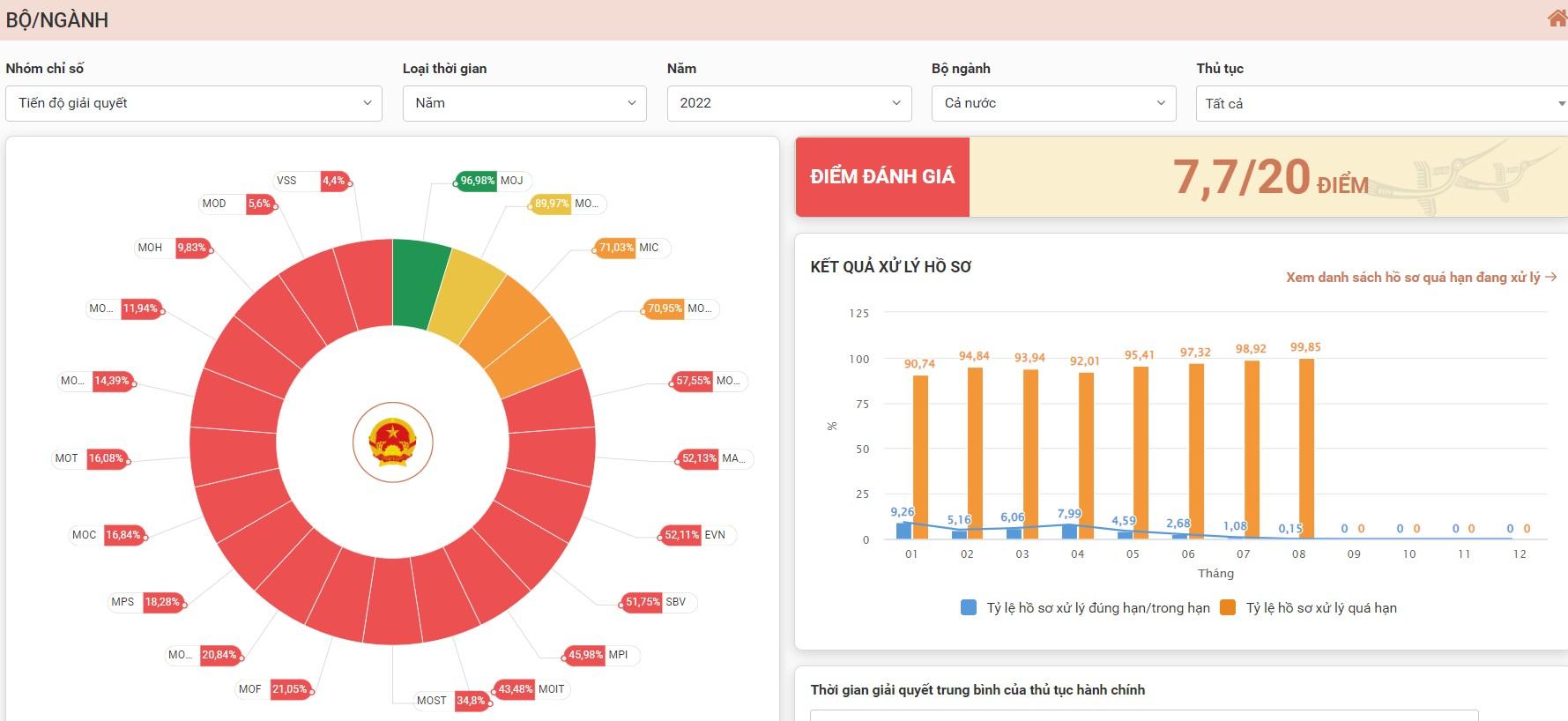 Chỉ số phục vụ người dân, doanh nghiệp (tình hình xử lý hồ sơ)