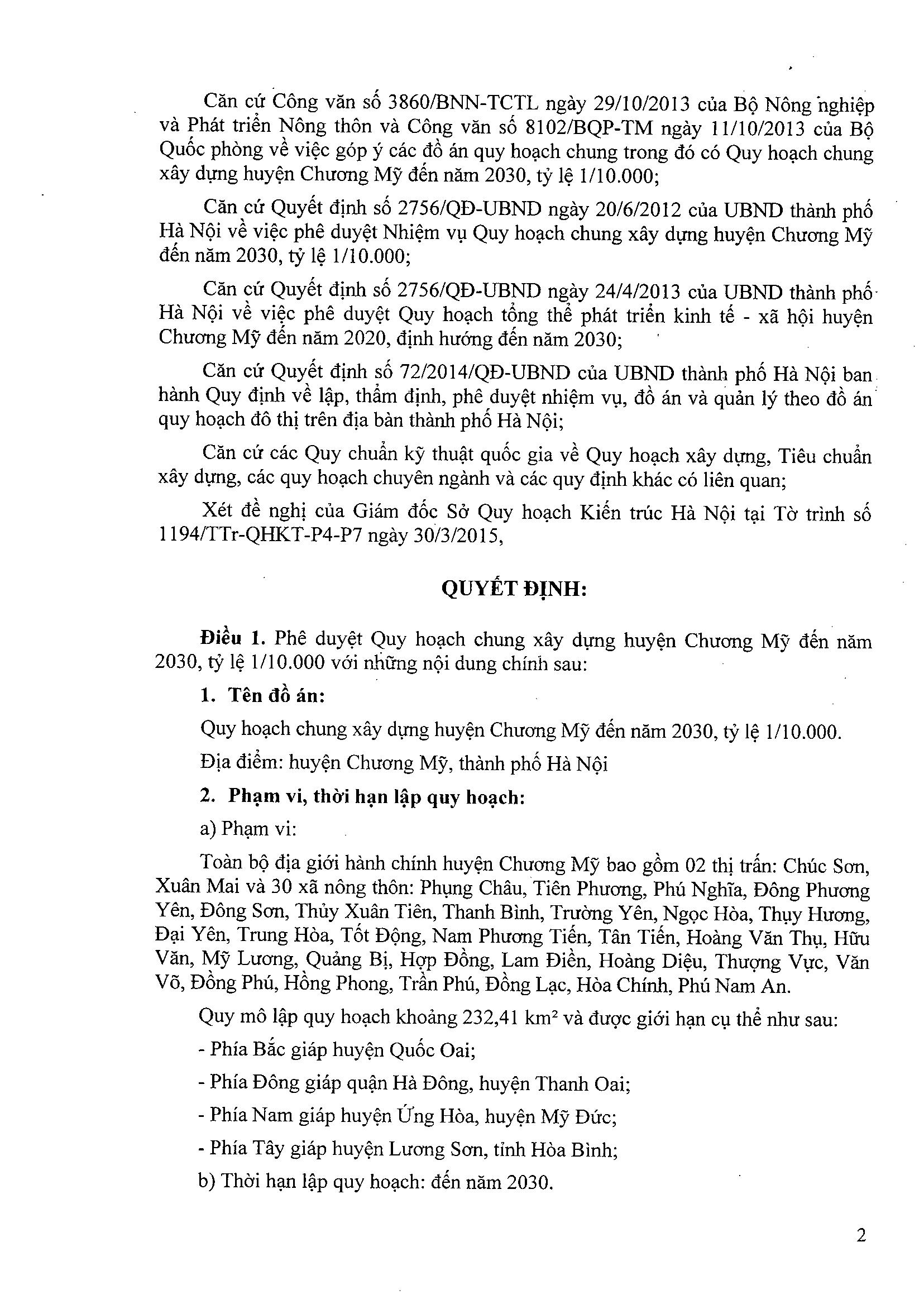 QĐ số 2512/QĐ-UBND nhiệm vụ quy hoạch chung xây dựng huyện Chương Mỹ đến năm 2030, tỷ lệ 1/10.000