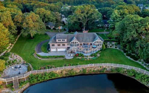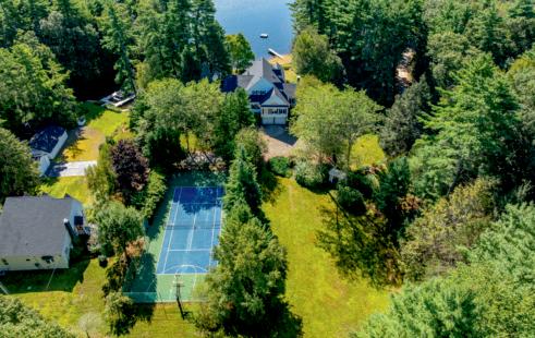 Rare Lake Mashapaug estate with two homes, docks, tennis court, boat garage, guesthouse, panoramic views, and unmatched privacy.