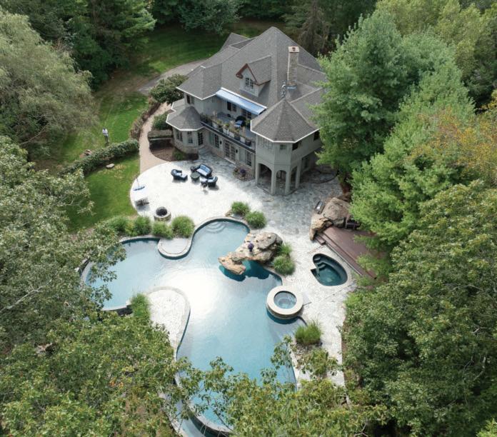 STONINGTON 20-acre sanctuary with a 4BR main home, 3BR guest cottage, pool, tennis court, and 5 garages. Just minutes from Mystic and Watch Hill, this turn-key compound ofers privacy, sophistication, and convenience. 455StoningtonRoad.com