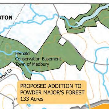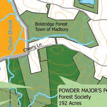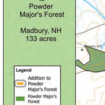 Now, the Forest Society can expand the protected area at Powder Major’s Forest b y p u rc h a s i n g 1 3 3 a c r e s t o t h e n o r t h , extending the network of conser vation land from Cherry Lane through to Hayes Road in Madbur y The property borders the Town of Madbury’s Bolstridge Forest, just south of the Bellamy Reser voir. The City of Portsmouth has actively conserved land around the perimeter of the Bellamy R e s e r v o i r f o r s e v e r a l y e a r s , a s i t i s t h e drinking water source for the city.
