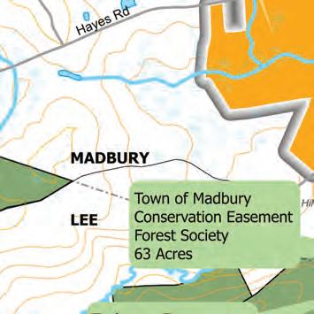 In 2016, the Forest Society mounted an ambitious campaign to conser ve P o w d e r M a j o r ’s F a r m a n d F o r e s t i n Madbury, Lee, and Durham, raising $2 25 million to protect nearly 300 acres in total in 2017 Today, this land offers a network of hiking, biking, and riding trails near M o h a r i m e t S c h o o l a n d Ti b b e t t s F i e l d o n R o u t e 1 5 5 i n M a d b u r y T h e p r o perty includes a mix of habitat types and frontage along the Oyster River and Dube Brook, supporting wildlife and water quality, and connects to conser vation easements at Tuckaway Farm, completed by the Forest Society in 2021.