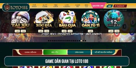 Sảnh dân gian Loto188 là lựa chọn không thể bỏ lỡ nếu bạn muốn vừa giải trí đậm chất Việt, vừa rinh tiền thưởng khủng.