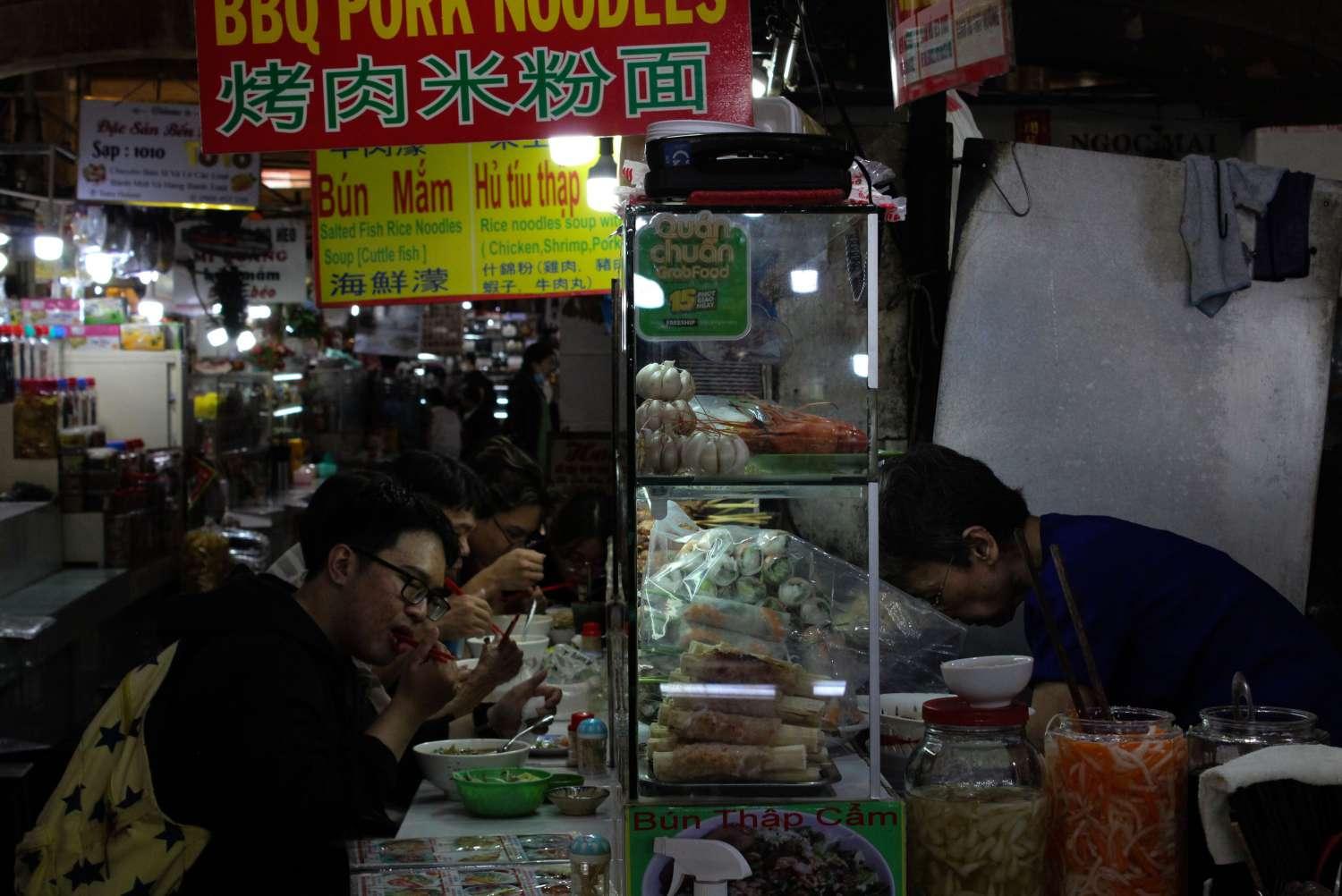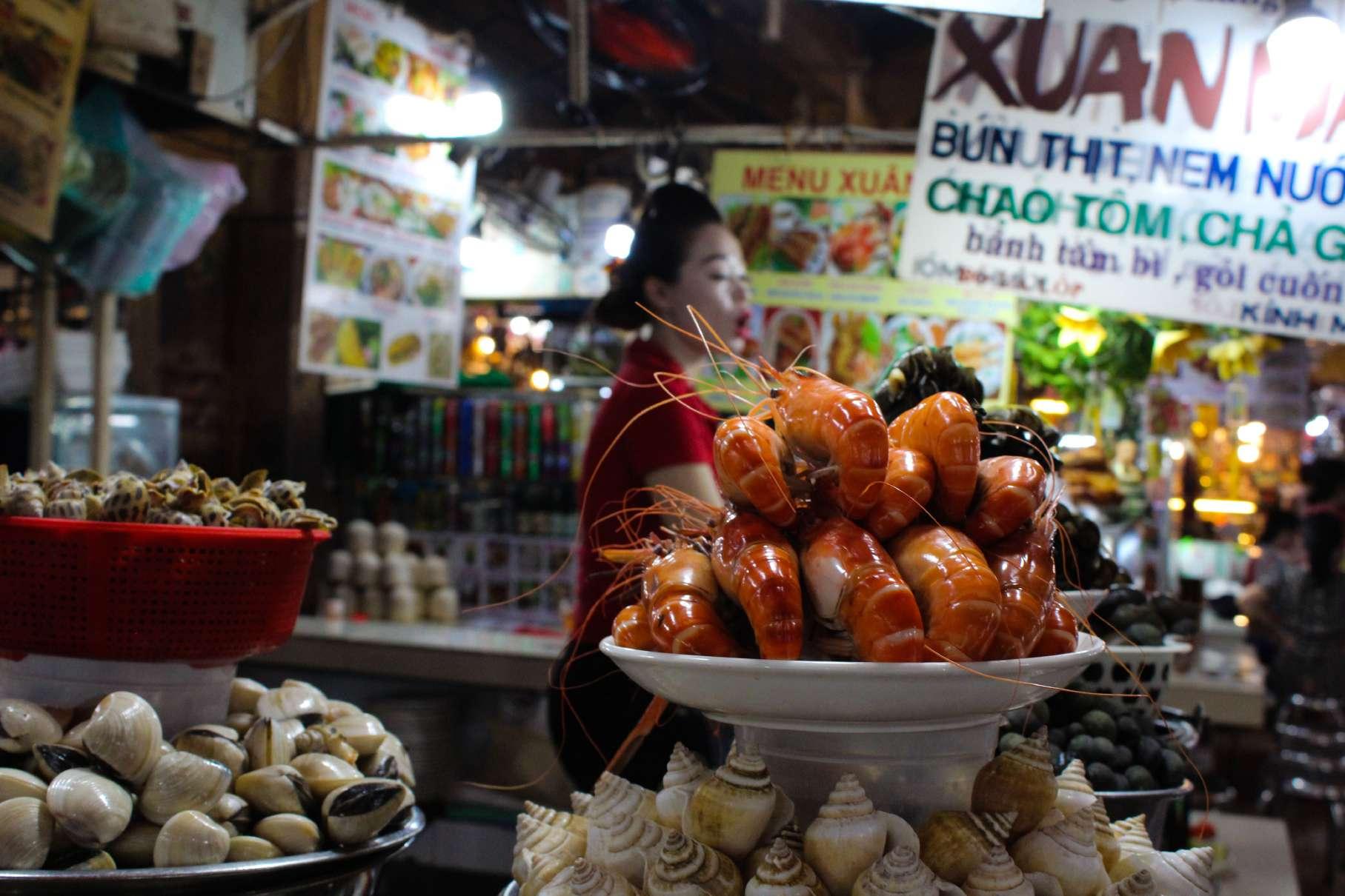 In the food section of the market you can find stalls selling seafood, traditional Chinese dishes, Northern Vietnamese dishes, Southern Vietnamese dishes, smoothies and juices, and so much more. Those mini restaurants are structured like mini cubes where a tiny kitchen would be set up behind a glass panel; you would be served your dish on the other side of that glass panel. Gordon Ramsay cooked at one of the stalls, Xuan Mai, a decade ago; the stall still exists today and the owner still fondly remembers his visit!