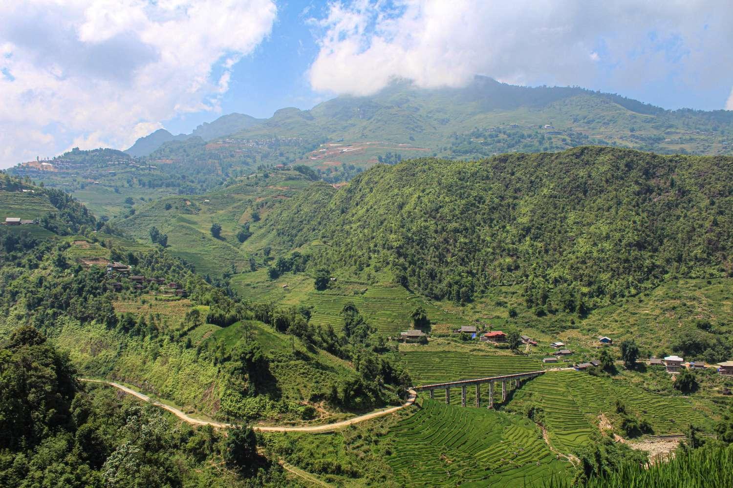 Sapa Town lies at the West of Lao Cai province as part of the Tay Bac Bo region in Vietnam. The area is known mostly for its picturesque rice terrain hills as well as its tribal village culture. 6 main tribes inhabit the area: Kinh, H'Mông, Dao đỏ, Tày, Giáy, Xá Phó. Geographically, Sapa’s average elevation is around 1500m to 1800m above the sea level. It is also home to Fansipan mountain (dubbed the “rooftop of Southeast Asia”) at 3143m above sea level. The region is mainly mountainous; many farmers decide to build farm crops on the hills or on the ground in the valley formed by two adjacent mountain ranges.