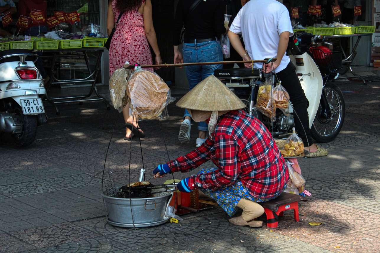 Stopping on the way to buy loaves of Banh Mi and trackside snacks for their children