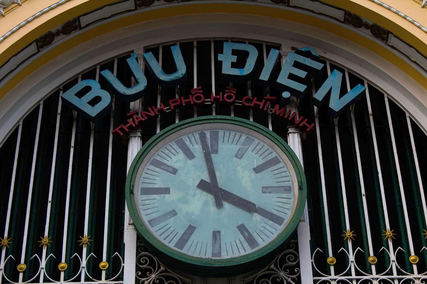 It was built between 1888 to 1891 by several French architects. The architecture of the building is a fusion of European and Asian aesthetics; the symmetrical building frame has 2 two-story segments on the sides and a three-story segment in the center with a sloped roof. The entryway is a giant arc lined up with steel painted green, which contrasts with the vastly light yellow interior to create a feel of ur ban space. Since 1891, the Post Office has served Ho Chi Minh City for 131 years.