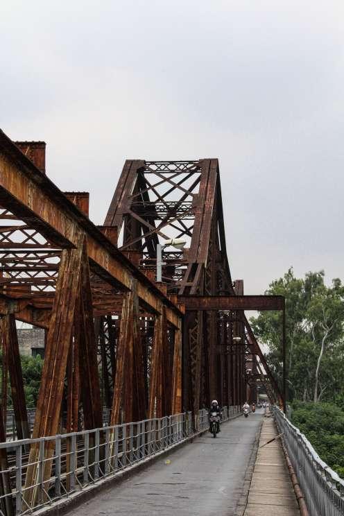 This is the Long Bien bridge. It is undoubtedly one of Hanoi’s most historic site. This bridge, built by the French between 1898 to 1902, is the first ever steel bridge that crossed over the Hong River. The bridge it self is 2290m long and is designed for a railway to operate in between the two road segments. It was originally meant for bicycles and pedestrians.