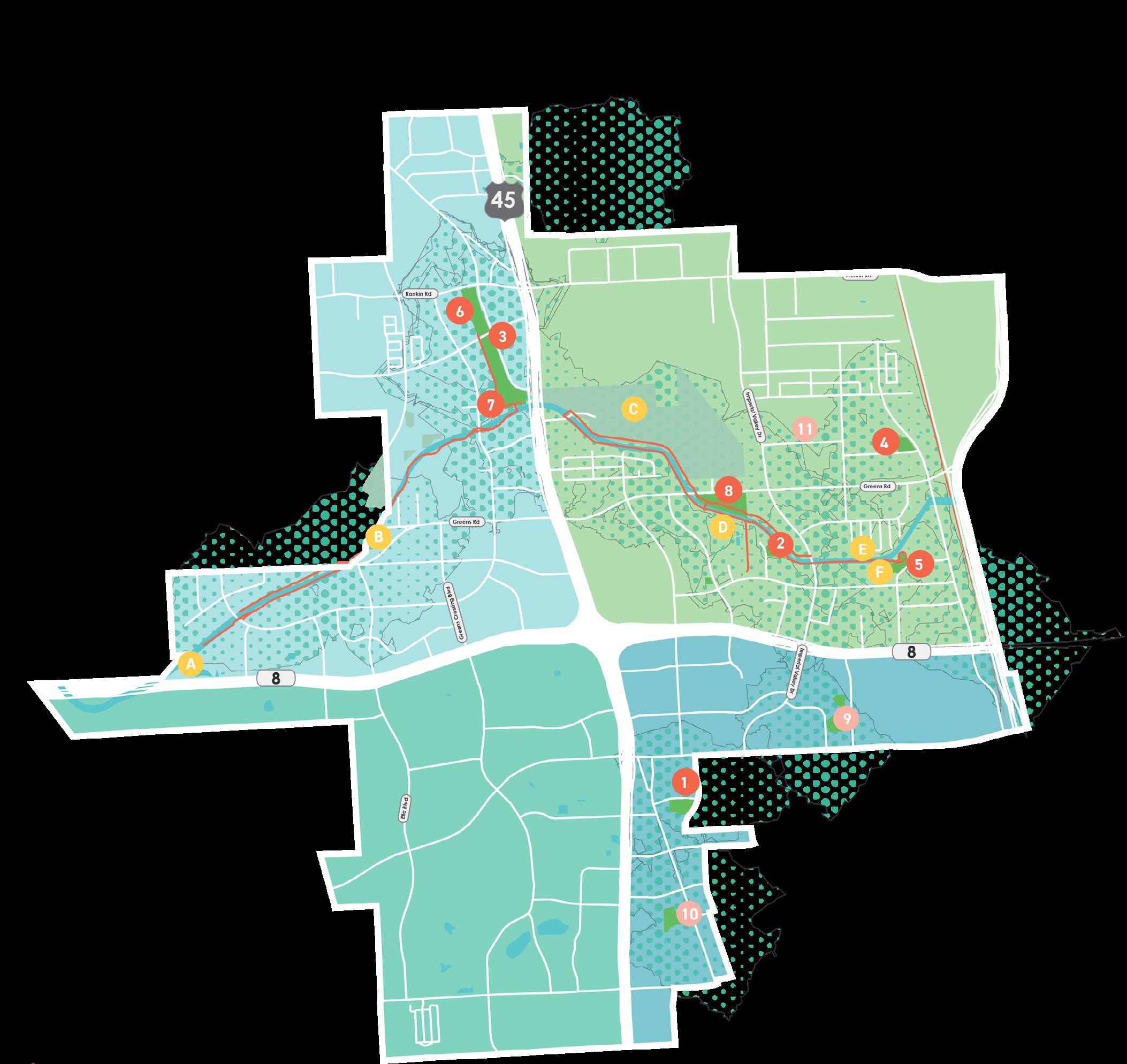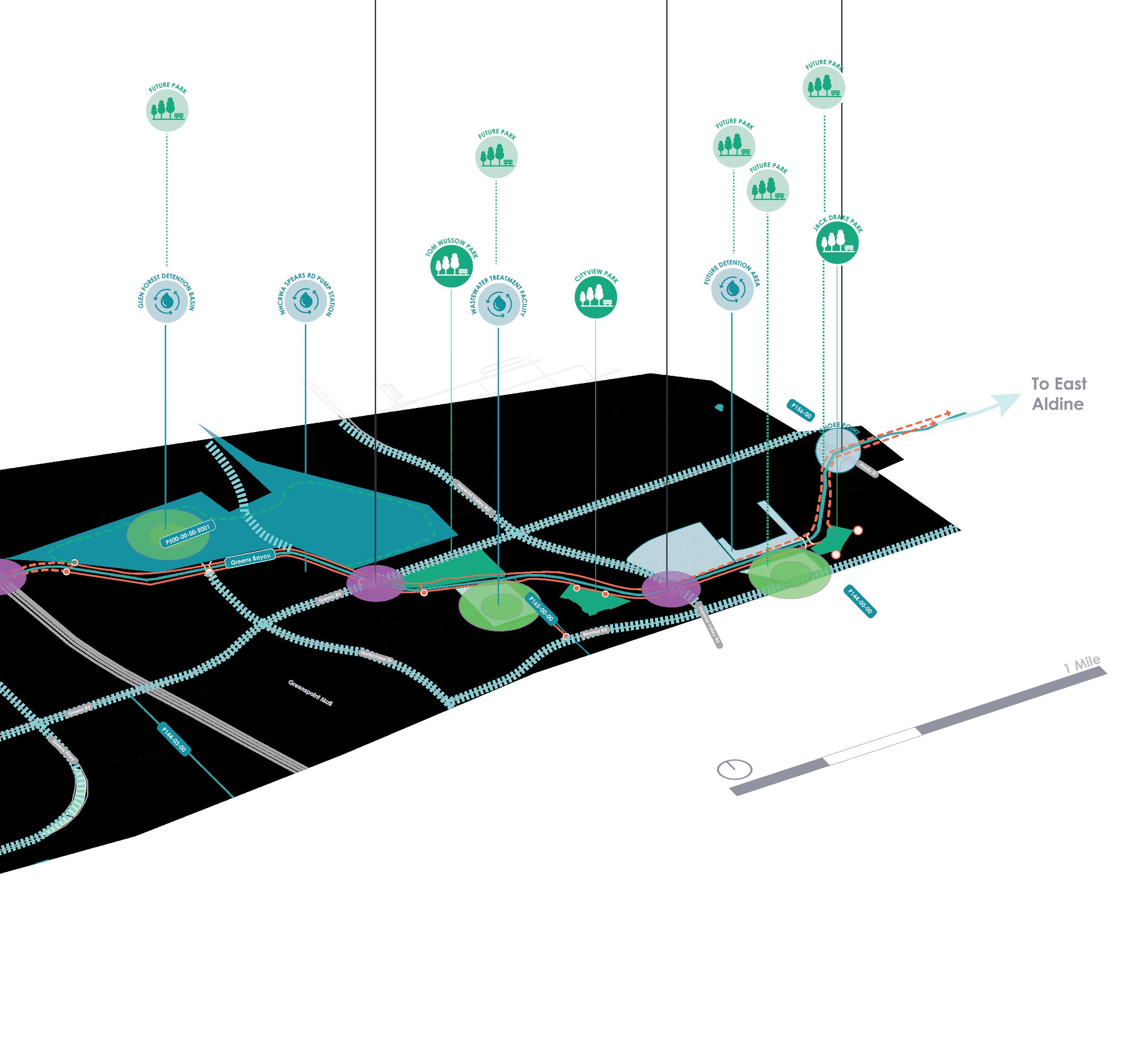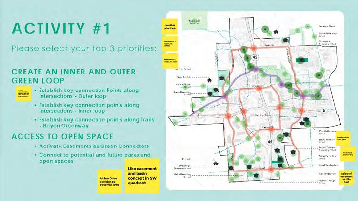 • District and Bayou-scale feedback offered insight into feasible options for realizing connectivity, such as leveraging utility easements as lower-cost options