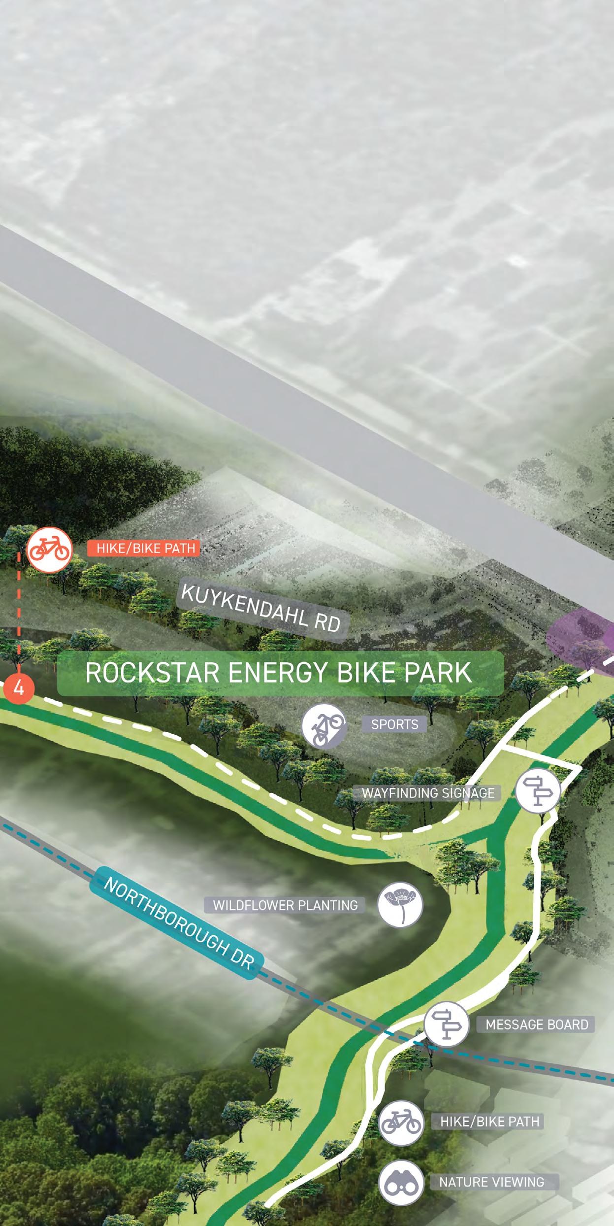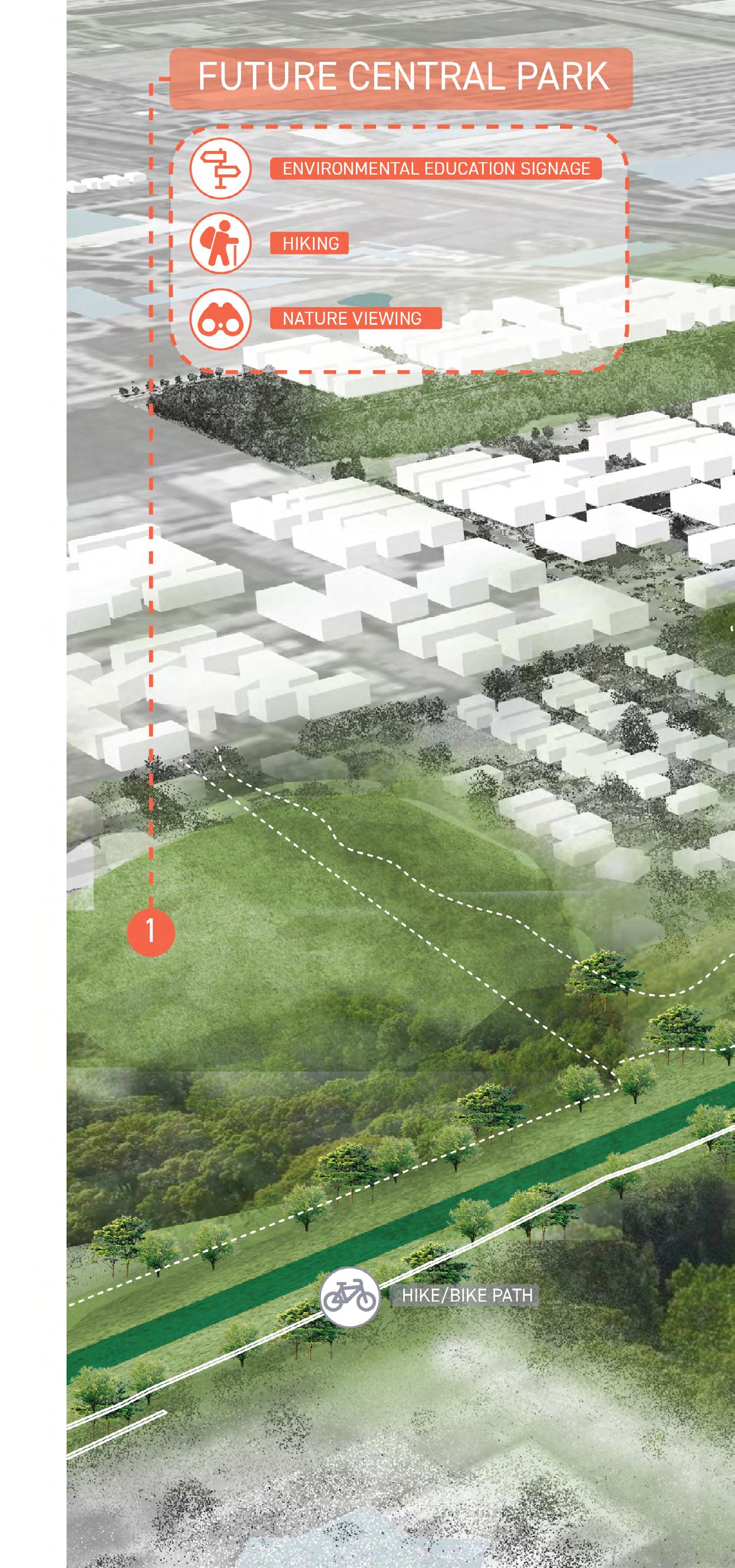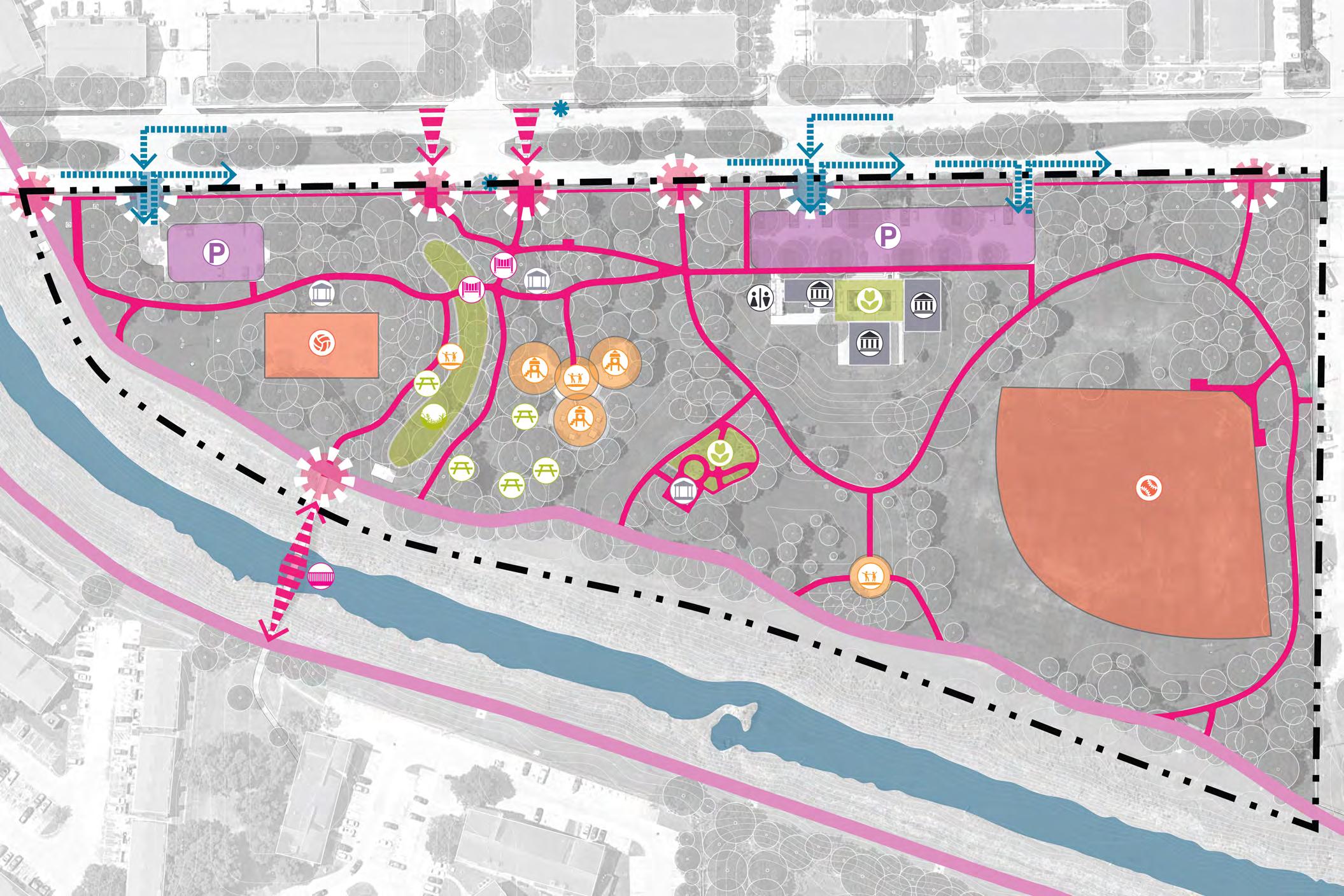 • Recognition of opportunities to link community mobility, recreation needs, and ongoing/future external initiatives, creating an interconnected parks system