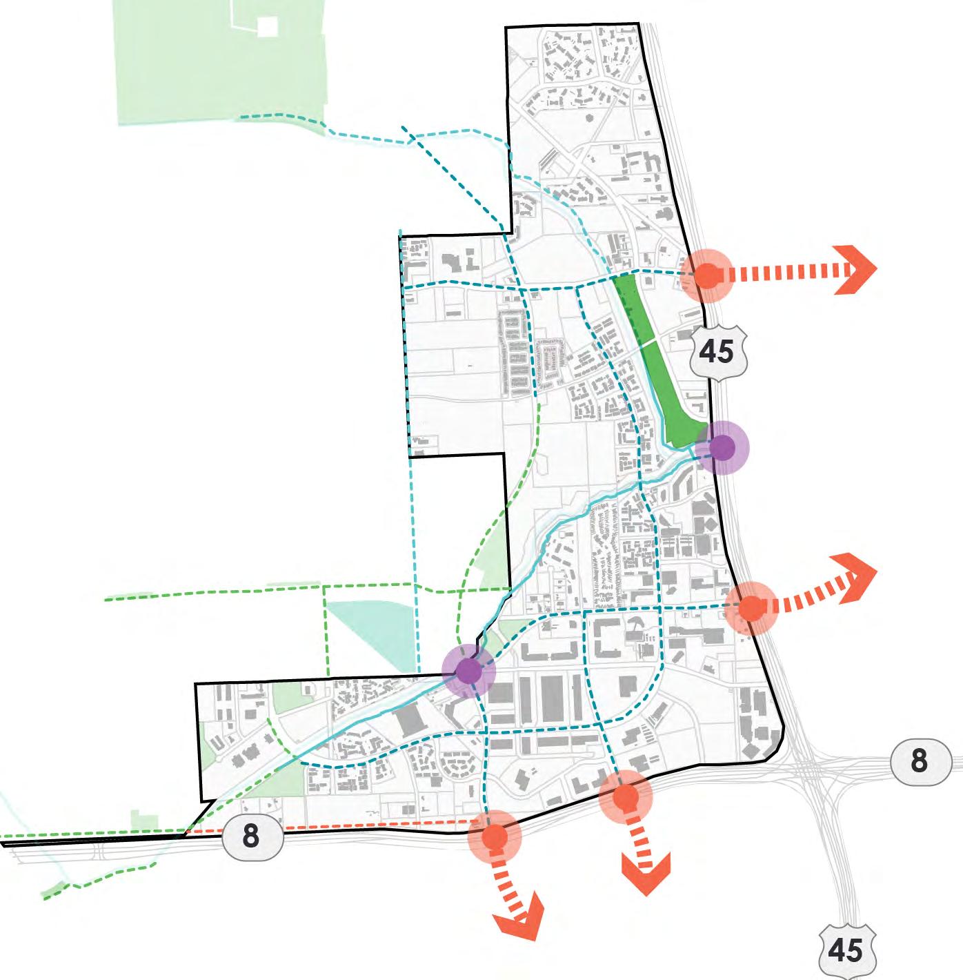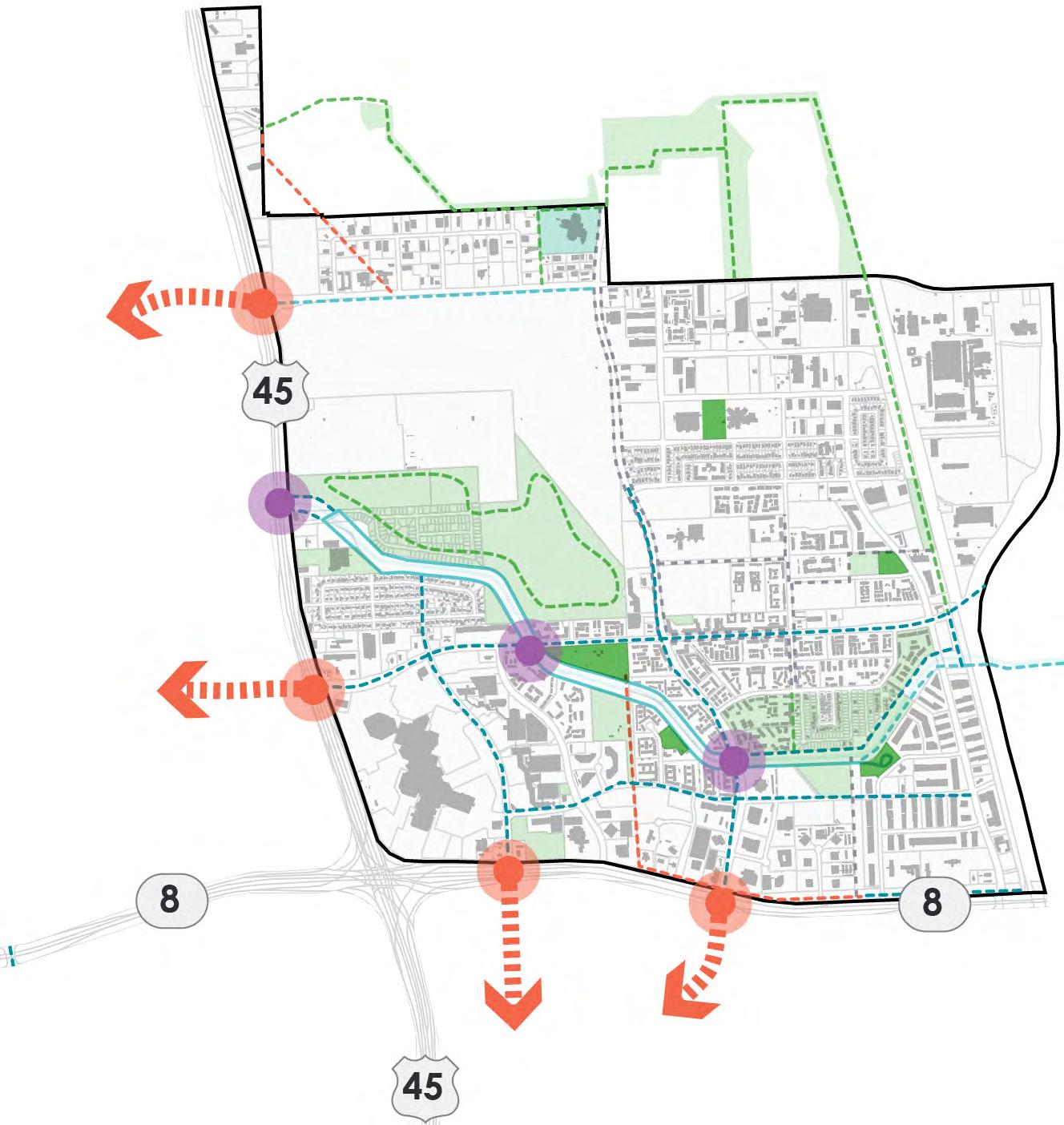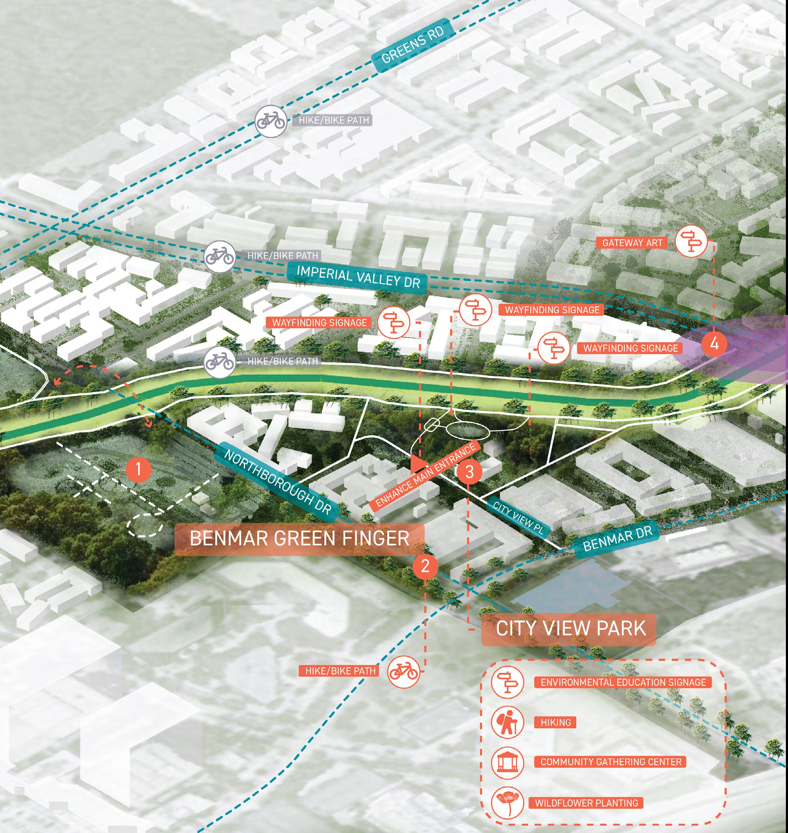 • Recognition of opportunities to link community mobility, recreation needs, and ongoing/future external initiatives, creating an interconnected parks system