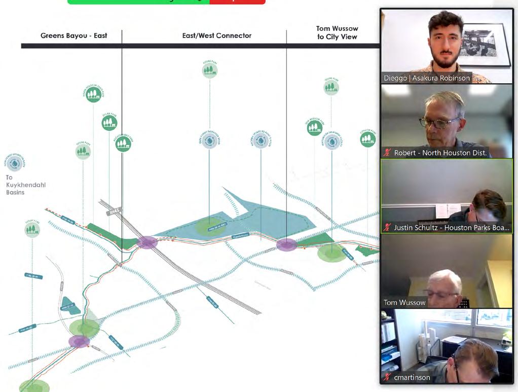 On February 8, 2023, 13 of 16 committee members met for the second Stakeholder Committee meeting of the North Houston District 2023 Parks Master Plan. A presentation on project progress, initial recommendations, and potential Thomas R. Wussow Park concept designs allowed members to evaluate the practicality of District and Bayou scale recommendations and opportunities identified by the project team. Stakeholders communicated their overall support for the project’s current progress, additional recommendations, and detailed feedback regarding the Wussow park concepts.