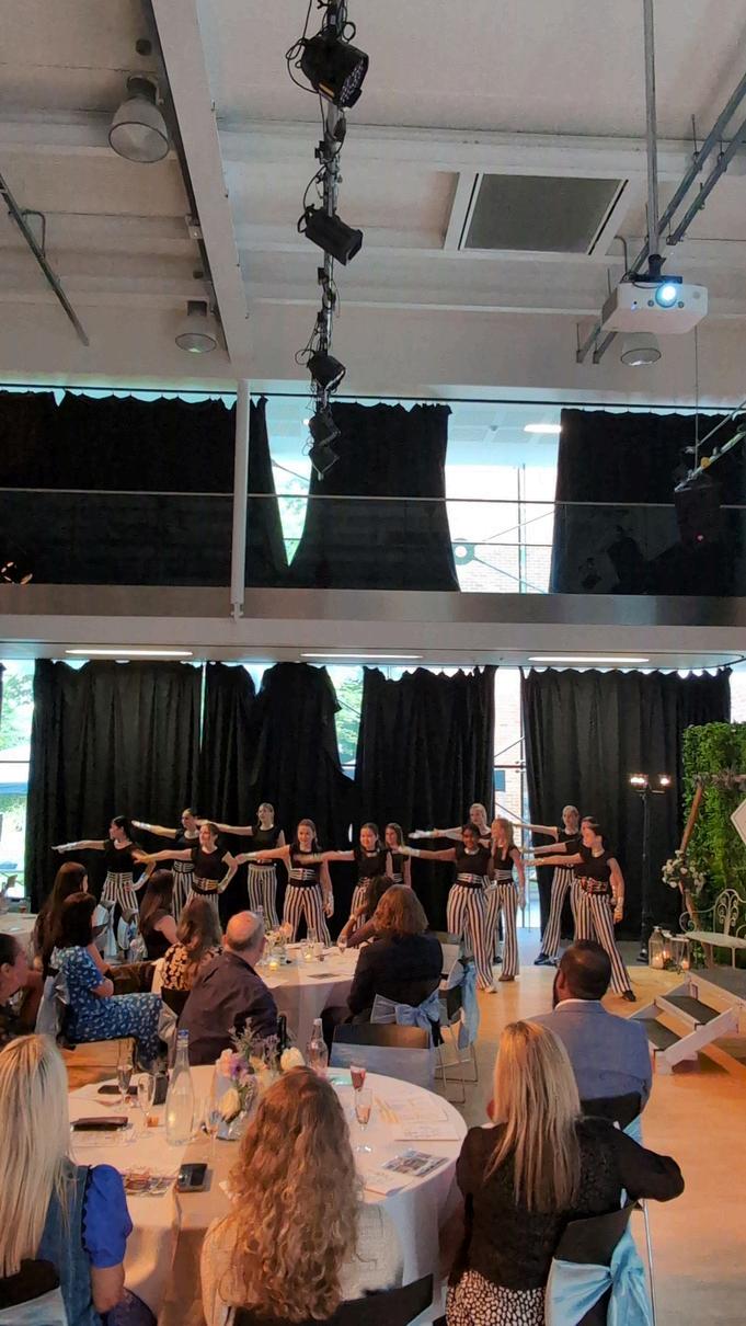 We were performing in the first act of the competition in the KS4 category to a mashup of the songs ‘Womanizer’ and ‘Circus’ both by Britney Spears Our dance had been choreographed by Maddy from DG dance and we are so grateful to have her as our teacher! Our costumes included different sparkly tops, skorts, feather accessories, gloves and fishnet tights. We were very nervous leading up to the performance as our dance and costumes were very different to the other schools’ but once we got backstage we were just excited to do our dance one last time We definitely danced our best with both the lifts being successful and the audience especially loving the whacking section during Circus