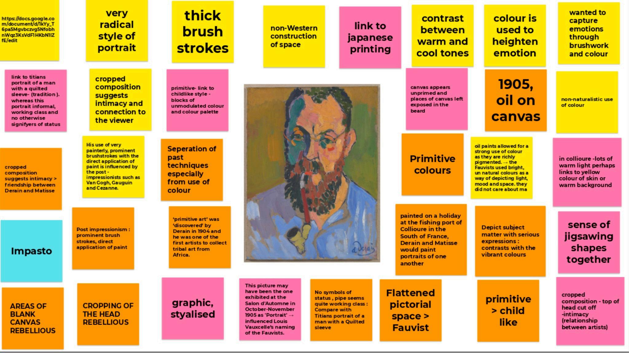 ‘Use Google Jamboard to create excellent revision resources, see the Fauvist example below.’ Miss Farmer