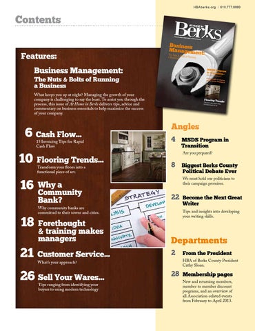 What keeps you up at night? Managing the growth of your company is challenging to say the least. To assist you through the process, this issue of At Home in Berks delivers tips, advice and commentary on business essentials to help maximize the success of your company.