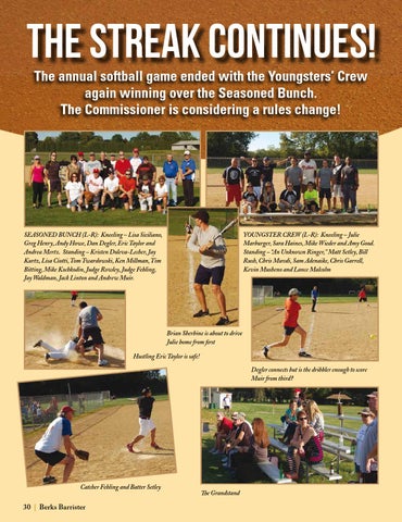 The Streak Continues! The annual softball game ended with the Youngsters’ Crew again winning over the Seasoned Bunch. The Commissioner is considering a rules change!