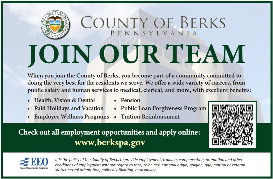 These articles, and many more, highlight the dedicated work being done every day by county departments, community partners and residents who care deeply about Berks County. We hope this issue informs, inspires and encourages you to stay engaged as we continue working together to strengthen our community.