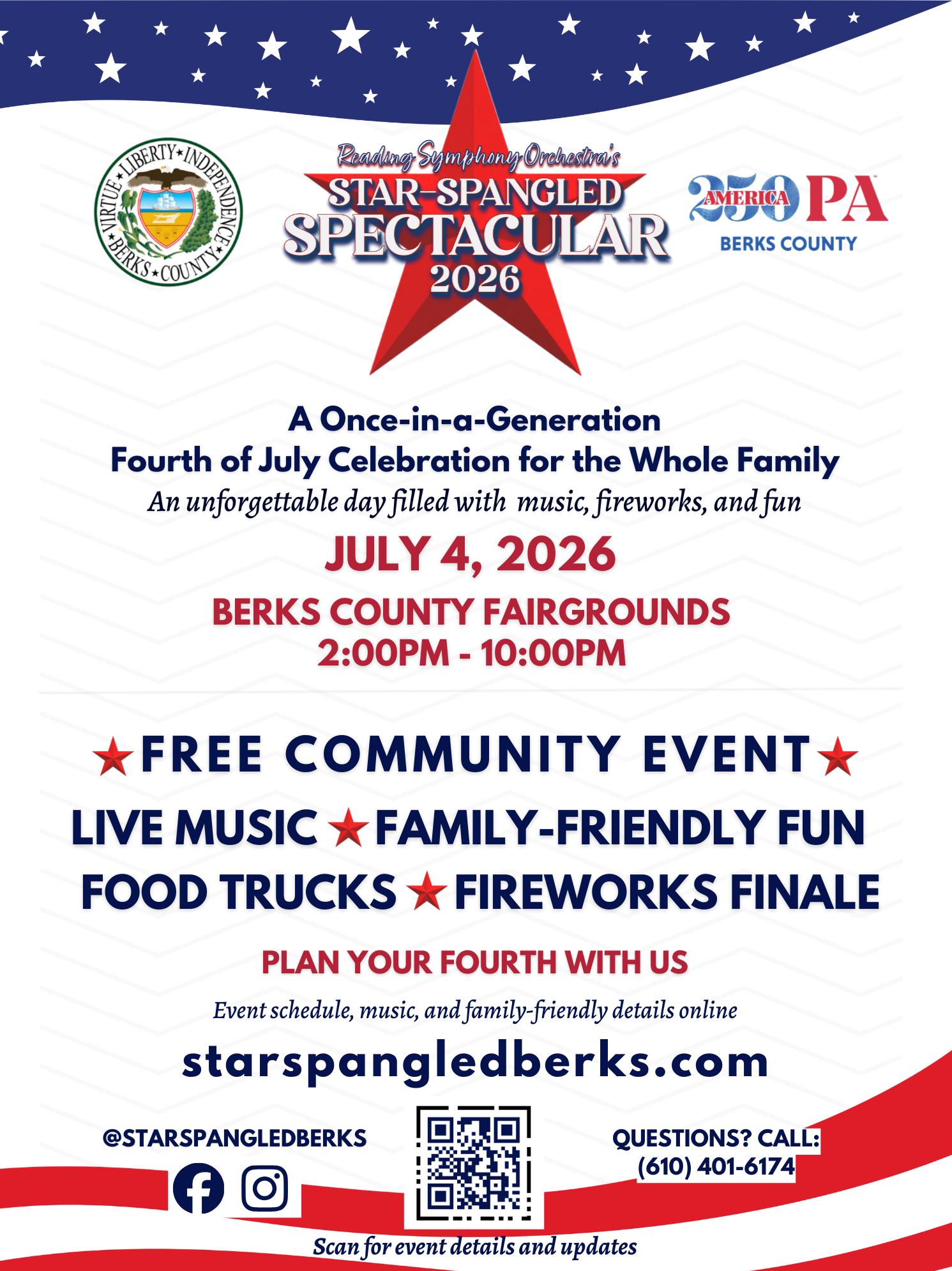 • 4 de julio – Espectáculo Star-Spangled con la RSO y fuegos artificiales – Berks County Fairgrounds