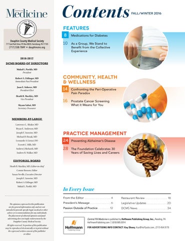 The opinions expressed in this publication are for general information only and are not intended to provide specific legal, medical or other advice or recommendations for any individuals. The placement of editorial opinions and paid advertising does not imply endorsement by the Dauphin County Medical Society. All rights reserved. No portion of this publication may be reproduced electronically or in print without the expressed written consent of the publisher or editor.