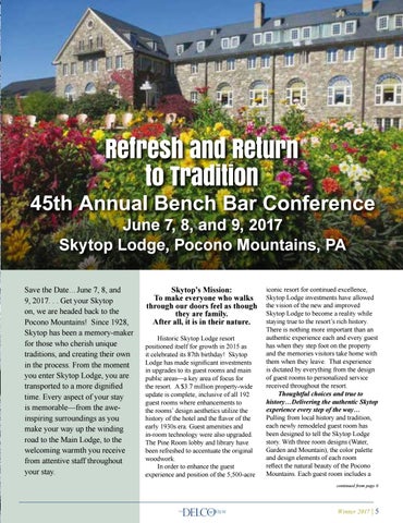45th Annual Bench Bar Conference June 7, 8, and 9, 2017 Skytop Lodge, Pocono Mountains, PA