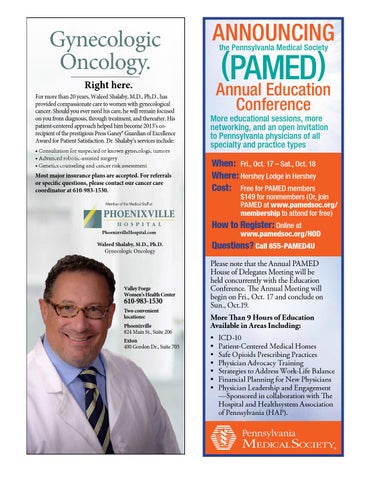 Please note that the Annual PAMED House of Delegates Meeting will be held concurrently with the Education Conference. The Annual Meeting will begin on Fri., Oct. 17 and conclude on Sun., Oct.19. More Than 9 Hours of Education Available in Areas Including: • • • • • • •