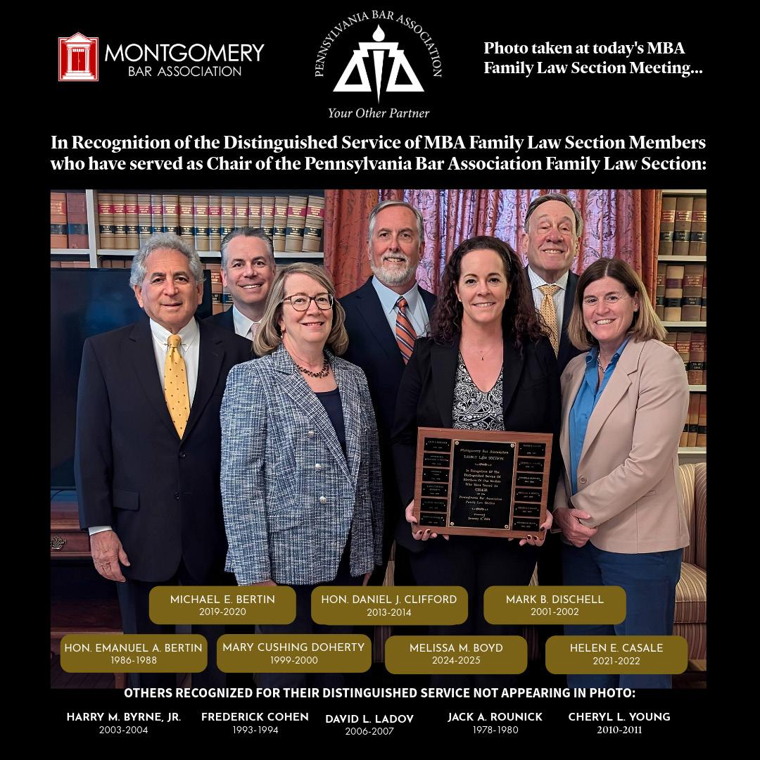 This year our MBA excelled at doing what we do best. We hosted our committees and sections for meetings, receptions, lunch-and-learns, and more than 50 CLEs, all of which served to enhance the practice of law in Montgomery County. Our Lawyer Referral Service continued an upward trend of growth and impact in our community, connecting those in need with able lawyers ready to provide zealous representation. Our lawyers donated their most precious commodity—time—and engaged in hundreds of hours of pro bono service for Montgomery County citizens. Our autonomous Judiciary Committee vetted and recommended candidates for new judicial seats as well as the retention of existing judges. And in November, we honored more than twenty 50-year members for their five decades of tremendous service to our MBA.