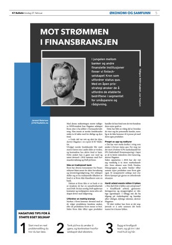 Med denne målsettingen startet tidligere NHH-student Joar Hagatun selskapet Kron etter å ha jobbet i Formuesforvaltning. Han mente at norske fondskunder måtte ta til takke med for dårlige og dyre fond. – Gode råd var rett og slett for dyre, skriver Hagatun i en e-post til K7 Bulletin. Utvalget norske fondskunder blir møtt med er lavere enn i andre deler av verden, og kostnadene hos aktive fond er høye. Dette ønsket han å gjøre noe med og satset dermed i 2016 sammen med Formuesforvaltning og DnB på Kron. Ikke en tradisjonell bank Kron har diverse konsesjoner fra Finanstilsynet blant annet for aktiv forvaltning og investeringsrådgivning. Der selskapet skiller seg ut fra tradisjonelle tilbydere av fond er at Kron ikke klassifiseres som en bank. Faktum at Kron ikke er en bank er en av årsakene de har en samarbeidsavtale med DnB. Da kan nemlig DnB oppbevare kontanter og verdipapirer, mens selve selskapet driver med rådgivning. Utfordrer en mektig bransje Styrken i Kron kommer dermed med at de velger produktene kundene ønsker, eller de produktene Kron mener er best. Siden Kron ikke tilbyr egne produkter