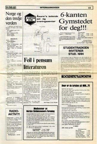 Vi har planlagt å lage en kåseriserie som skal handle om "en norsk students opplevelser i utlandet •• og inviterer DEG til å skrive!!! Det vil stå fritt opp til den enkelte hva han eller hun vil velge å ta opp , men Rad iogruppen forbe holder seg retten til å velge ut hvilke kåserier som skal bli med i serien . Kåse riene skal være på ca . 4-5 mi nutter, og skal sendes i Studentradioens morgensending f. o.m. mandag 20/4 t.o ,m. fredag 26/4. Forfatterne vi l selv få anledning til å lese inn sine bidrag i stud io. Kåseriene må være innlevert inn en onsd ag 8 . april til Radiogruppens posthylle. Radiogruppa - N .H. H.
