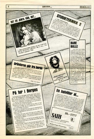 Etter timer med nitidig vurdering for og imot, har redaksjonen valgt simpelthen å kalle årets skoleavis for BULLE.Vi begrunn~r dette med at de fleste andre aviser det er naturlig å sammenligne seg med beholder sine navn på tross av et skifte i redaksjo. nen. Det ville være utenkelig at f.eks. Kapital, gitt at Trygve Hegnar gikk fra borde ville skifte til KAPITALEN eller KAPTEINSNYTT. Mangelen på et «fjkst>~ n~yn kan også bunne i vår kollektive mangel på fantasi, forslag so m TSJERNOBULLE , NEIGHBORHOOD BULLY, BULLDOZER, BULGARIA og KABUL viser de snevre grenser for redaksjonens forestillingsevne. BULLER & BR US var dessverre allerede brukt.