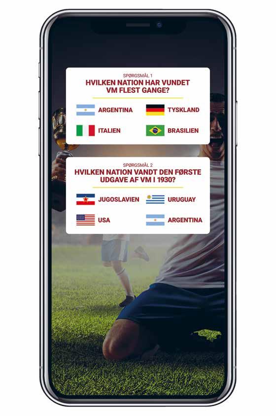 B00015 BET25 VM-QUIZ VIND 100 KR. FREEBET 18+ · Spil ansvarligt · Udeluk dig via ROFUS · Vilkår gælder Kampagnen er gyldig til d. 17/11-22 kl. 23:59. Quiz med og vind 100 kr. freebet til Bet25. Freebets er inddelt i 4 kategorier, alt efter antallet af korrekte svar (1-2 = 0 kr. 3-5 = 25 kr. 6-9 = 50 kr. 10 = 100 kr.) Deltag maks. 1 gang. Kræver gyldig konto på bet25.dk. Samtykke påkrævet. Vinderne får besked d. 18. november 2022 kl. 16.00.