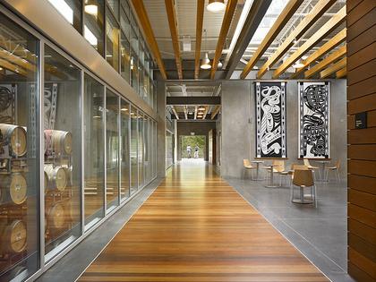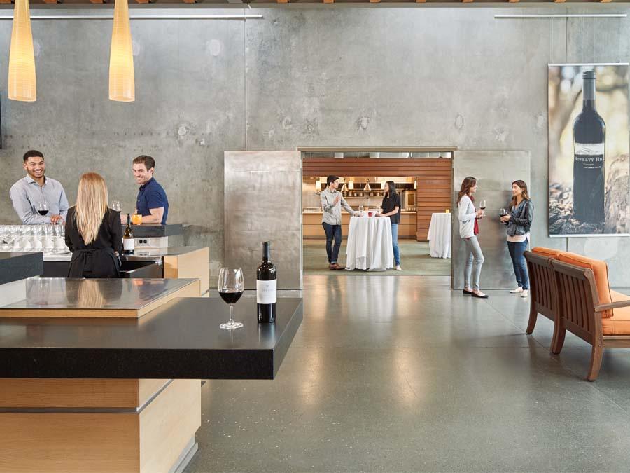 Overlooking the winery’s tank room to the north and the venue’s spectacular garden and patio to the south, the Terrace Room is a perfect setting for a formal, seated dinner party or may be combined with the adjacent Tasting Room for a more casual reception for up to 185 guests. For those who desire, a sliding door opens to the kitchen, providing an insiders’ view of our winery chef and his culinary team at work.