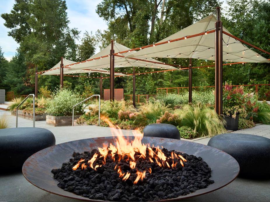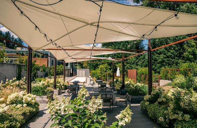 The Tasting Room is notable for its dramatic soaring ceilings, dual-sided bar and double-sided fireplace with indoor/outdoor lounge seating Take advantage of the expansive gardens, picnic tables, patio heaters, and outdoor fireplace. Combined with the Terrace Room, the indoor/outdoor locations can accommodate up to 300 guests in the summer months.