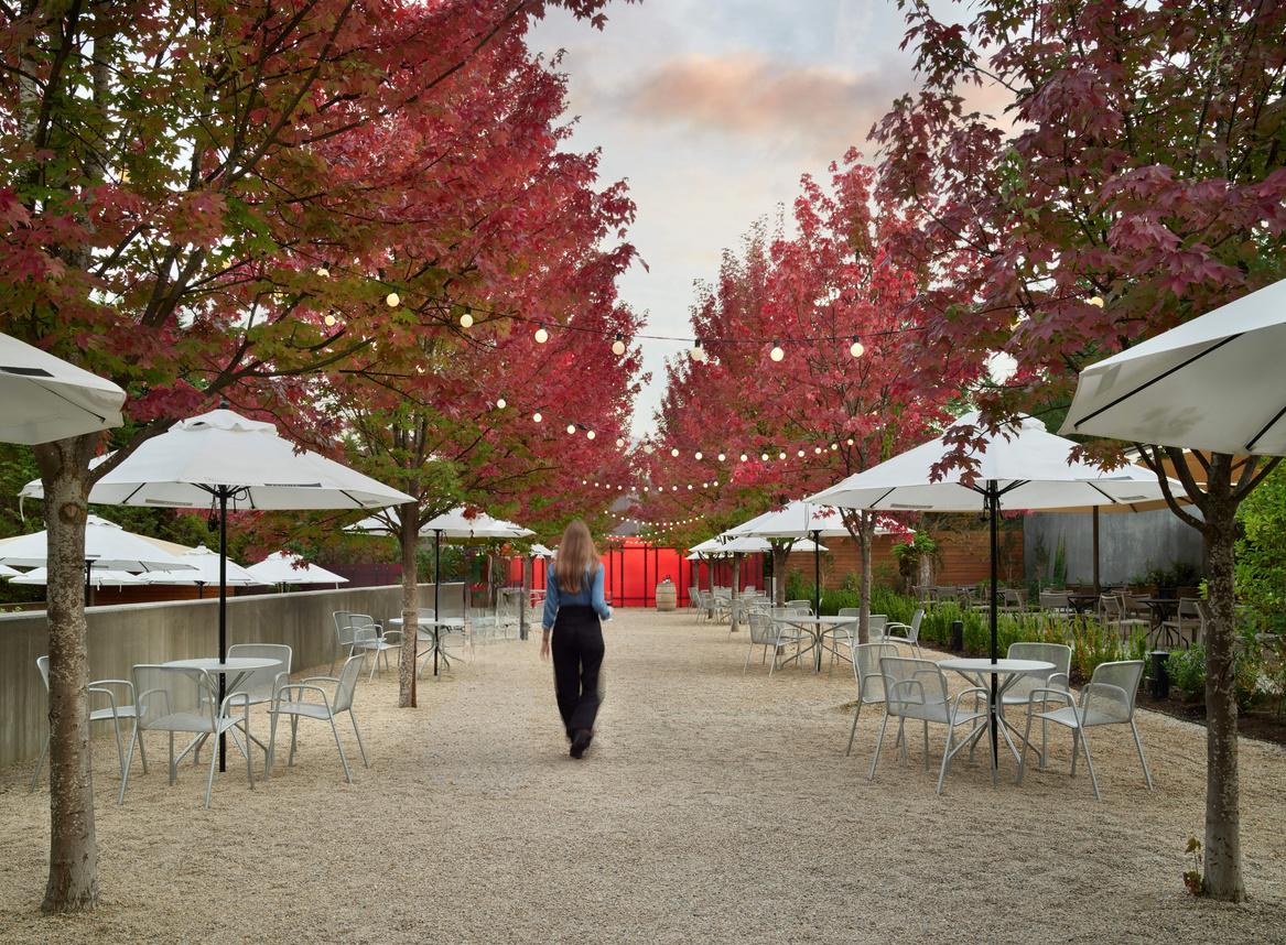 Surrounded by native plants, café lights, a bocce ball court, and a freestanding firepit, the 6,700 sq. ft. Lower Garden is the perfect space to add on to the Cellar Room for a wine lover social, farm-to-table dinner, or outdoor dance floor. Concrete and ipe hardwood, used in the building’s award-winning design, provide a casual setting.