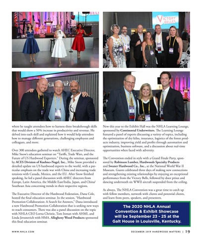 The 2020 NHLA Annual Convention & Exhibit Showcase will be September 23 - 25 at the Galt House in Louisville, Kentucky. D E C E M B E R 2 0 1 9 H A R D W O O D M AT T E R S |