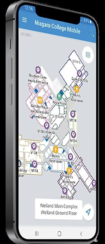 3) Open the app and click "On Campus Wayfinder (no sign in)" to open the Welland Campus Map. Tap the menu icon to switch to other locations.