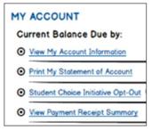 • Receive an email with your most current payment receipt summary within 24 hours of the payment being posted to your student account