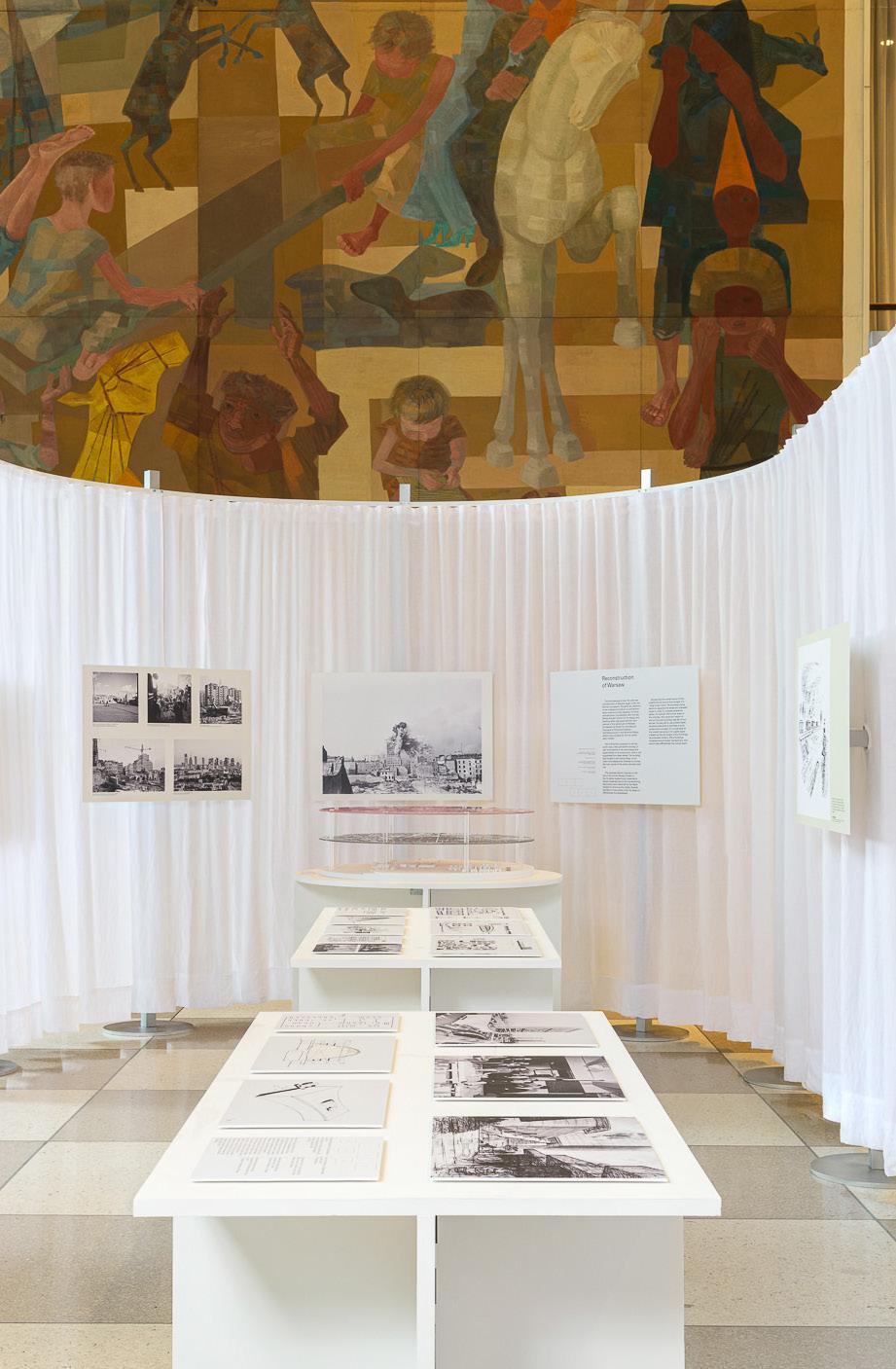 Wystawa prezentuje w dużej mierze niepublikowane dotąd archiwalne fotografie, dokumenty, rysunki, plany, artykuły prasowe, materiały video. Powojenna historia obszaru Starego Miasta została opowiedziana dzięki wiedzy i archiwaliom zgromadzonym podczas rozmów z osobami zaangażowanymi w odbudowę. By poszerzyć punkty widzenia na odbudowę, zaproszeni do współpracy artyści i artystki, w nawiązaniu do lokalnej tradycji Biennale oraz poszczególnych wątków poruszanych na wystawie, stworzyli autorskie formy przestrzenne.