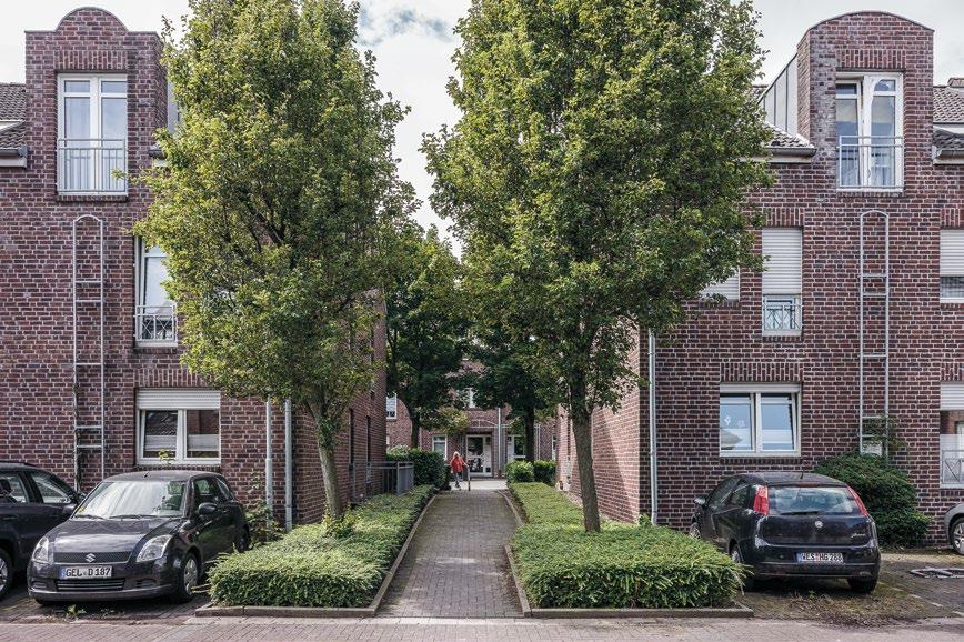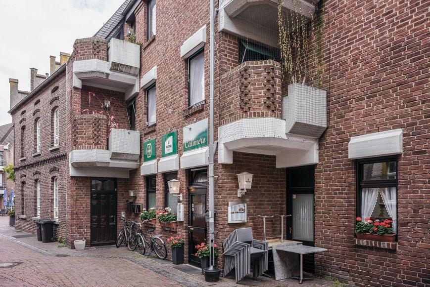 5. Historyczna i współczesna zabudowa mieszkaniowa w centrum Straelen. Charakterystyczna trzykondygnacyjna, całkowicie zamknięta, z lokalami usługowymi na parterze – przeważnie niewielkim sklepem.