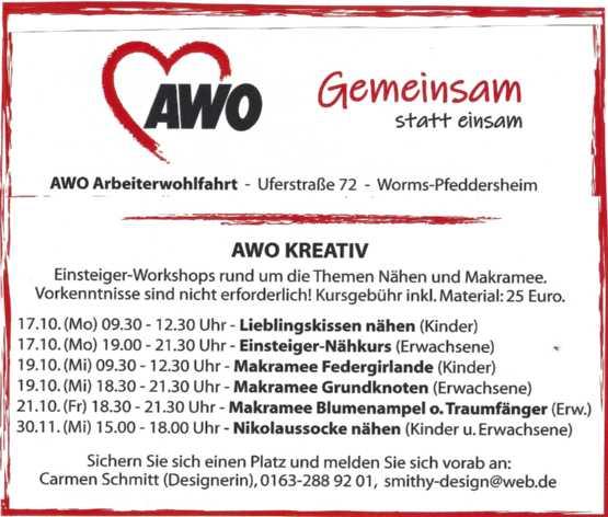 AmDienstag,dem11.Oktober,18Uhr,„Neuerungen/ÄnderungendurchdasBtOG 2023fürehrenamtlicheBetreuerinnenundBetreuer“, ReferentinistAndreaMaurer (KreisverwaltungAlzeyWorms.DerAufbaukurs2022 findetalsOnline-Präsenz-Veranstaltungstatt.NacherfolgreicherAnmeldungerhalten dieTeilnehmerdiebenötigten ZugangsdatenperE-Mailzugeschickt.Anmeldungenper E-Mailan sobotta@caritasworms.de oderunterTelefon 06241/268120