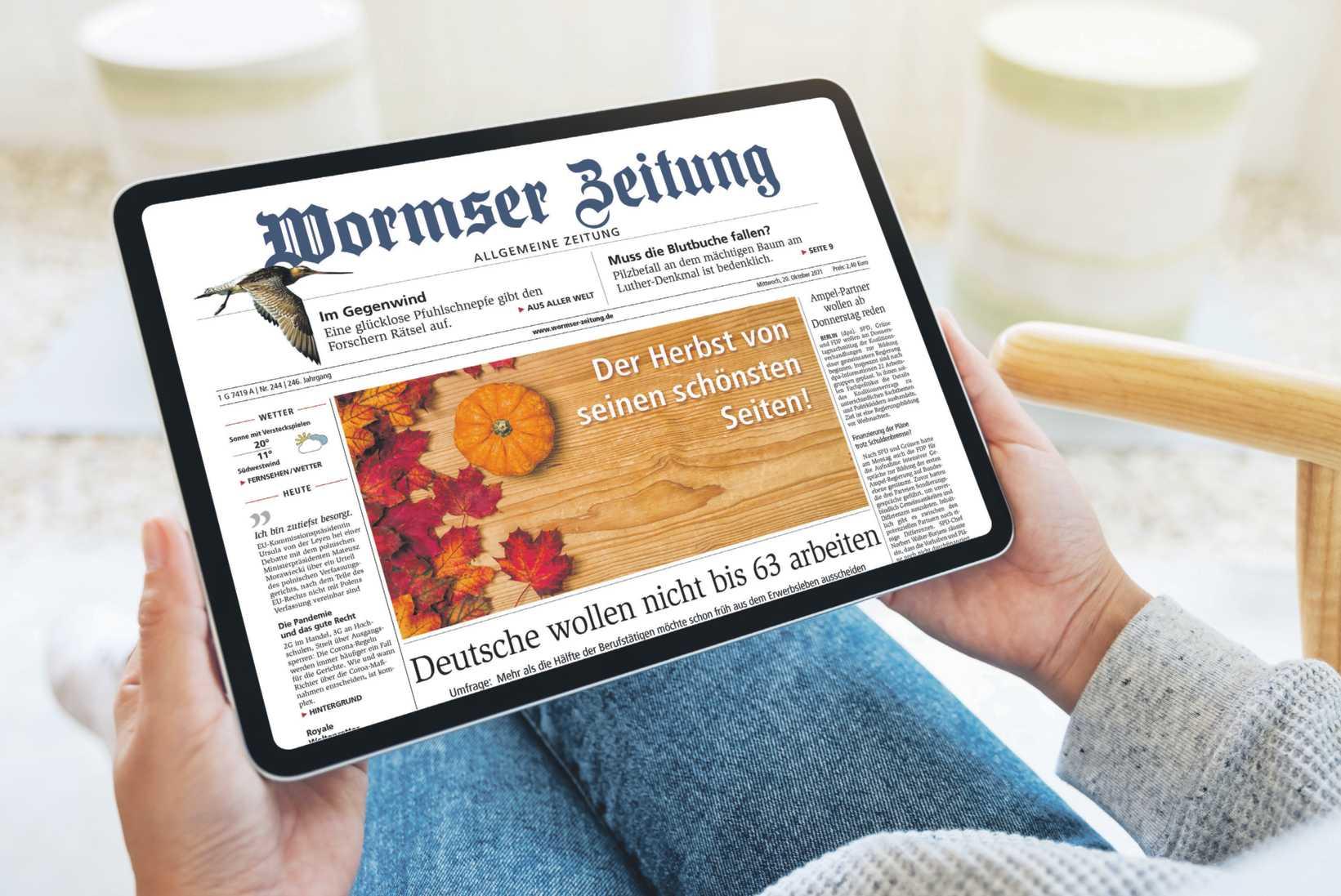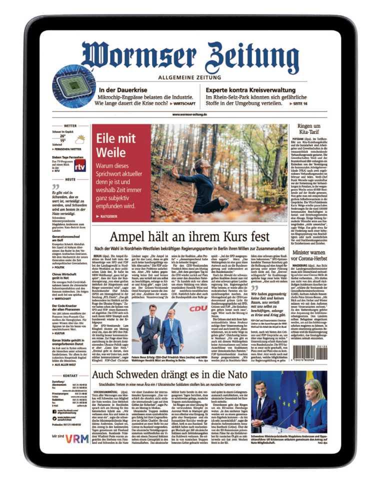 Ein Angebotder VRM GmbH &Co. KG,Erich-Dombrowski-Str.2,55127 Mainz. Wir schenken jedem neuen Leser bis zu 200 Euro! siJetztchern! HÖCHSTEZEIT FÜR HÖCHSTEPRÄMIEN • DER ZEIT VORAUS: Schon ab 19.30 Uhr die VorabendAusgabe lesen • NEU: Ein Abo, alle E-Paper-Lokalausgaben kostenlos lesen • SCHNELLERINFORMIERT: Der neue Newsticker in der E-Paper-App -Top-Nachrichten in Echtzeit aus Ihrer Region • KOMFORTABEL: Mit Zoom- und Vorlesefunktion, Artikel suchen, speichern und versenden • MEHR UNTERHALTUNG: Knifflige Sudoku- und Kreuzworträtsel, spannende Podcasts zu vielen Themen und regelmäßig digitale Magazine zum kostenlosen Download 200€ bis 23. Oktober 2022 150€ bis 6. November2022 Bestellen Sie das E-Paper der Wormser Zeitung und freuen Sie sich schon bald über eine satte Barprämie! Greifen Sie am besten heute zu, denn schnell sein lohntsich. Jetzt ranandie Höchstprämie! Sicher und schnell online bestellen. Das kann nur das E-Paper –Viel Lesekomfort, noch mehr Extras: Hier geht´s zur Prämie: wormser-zeitung.de/geldpraemie Stichwort: Geldprämie 06131 484997