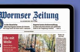 inSachenImmobilien Seitüber40Jahrenvermittelnwirerfolgreich fürunsereKunden.Aufdasstetshinzu gewonneneKnowHowkönnenSiesichverlassen. MöchtenSieverkaufenodervermietendann legenSieIhreImmobilienvertrauensvollin unsereHände. WirberatenSiegerneundfreuenunsauf dasGesprächmitIhnen. Herzlichwillkommen. Mitglied im Immobilienverband Deutschland Neumarkt 7 • Worms • Tel. 06241 6961 WWW.DENSCHLAG.DE Ihr Zuhause liegt uns am Herzen! Wir an Ihrer Seite – Ihr Makler für Rheinhessen Zuverlässiger Partner für Verkauf, Vermietung und Verwaltung Ihrer Immobilie. Wir freuen uns auf Ihren Anruf. 22_21s Wir suchen für Sie: · Einfamilienhäuser · Mehrfamilienhäuser · Eigentumswohnungen · Bauplätze · Mietwohnungen Sachverständige für Immobilienbewertung D2 seit 1974 Tel.06241/841-3500 E-Mail:immobilien@vb-alzey-worms.de MeineRegion. MeinMakler. OnlineImmobilienbewertung www.vb-alzey-worms.de/immobilien Immobilie jetzt TOP verkaufen. 60 JAHRE BASTIAN IMMOBILIEN BASTIAN-WORMS.DE TEL 06241 6141 VERKEHRSFREIGABE: Ab17.OktoberkanndieBürgerschaftdieneueStraßenutzen EndederVollsperrungamFahrweg FÖRDERPROGRAMM: StartsignalausBerlin/2,34MillionenEuroimZeitraumvon2022bis2025fürattraktiveInnenstadt „WormswirdWOW“