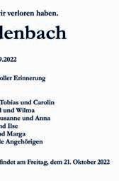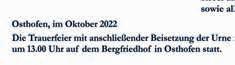 DieBeerdigung ndetamFreitag, dem21.Oktober2022,um13.30Uhr aufdemFriedhofinGimbsheimstatt.