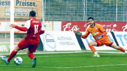 FastdirektnachWiederanpfiff erzielteWilschreydieFührung. SehrschlechterZeitpunkt.Eswar nichtso,dassdieTSGnichtgewilltwar,ganzimGegenteil,aber miteinemMannwenigerauf demPlatz,keineChancemehr. MaxWilschreyschraubtesein TorkontonochumzweiTore hochundderTreffervonFlorian Jannke,derabgefälschtwurde, passteindieSituationderTSG andiesemTage.