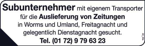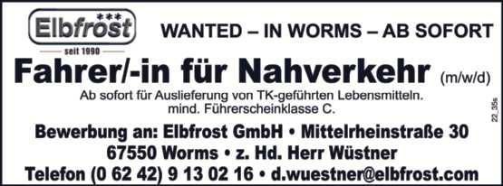 ZuschriftenerbetenanVerlagNibelungenKurierGmbH,Prinz-Carl-Anlage20, 67547WormsoderperE-Mailanverlag@nibelungen-kurier.deunter: Chiffre7388