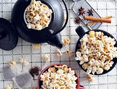 2.DenlosenChai-TeemitZucker,ZimtundSalz vermischen.PopcornmitgeschmolzenerButter beträufelnundmitChai-Tee-Mischungbestreuen undsofortservieren.