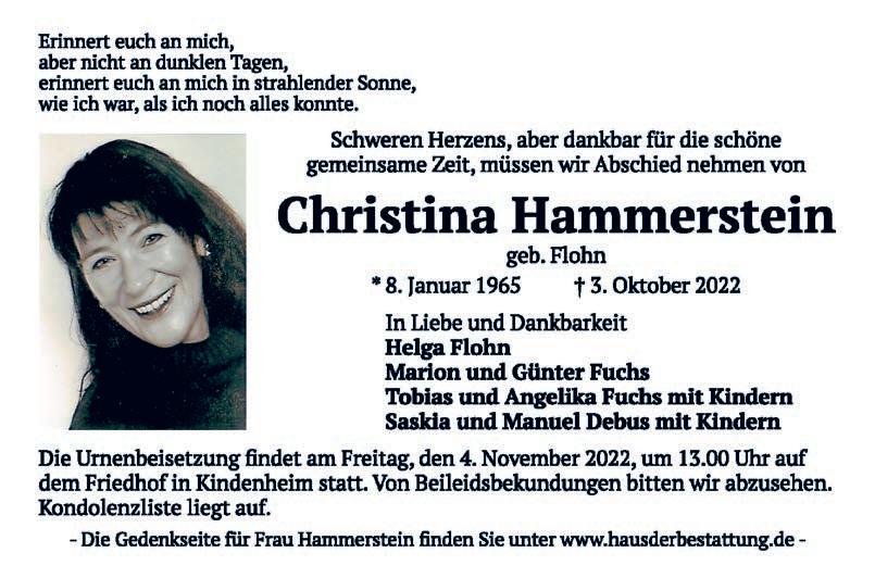 DieGratis-ZeitungfürdasNibelungenland Mittwoch,2.November2022,44.Woche,39.Jahrgang| Auflage: 51.545verteilteExemplare Prinz-Carl-Anlage20·67547Worms·Tel.(06241)9578-0·www.nibelungen-kurier.de BittebeachtenSieunsereSonderseiten GUTESSEN UNDTRINKEN sowie DIEKFZ-INNUNG INFORMIERT * Zertifizierter Betrieb nach DIN ISO 9001:2015 Foto: Johanna Wagner pixelio.de 202_m Hugo Holl KFZ-Service GmbH & Co KG - Mörstädter Str. 35 67550 Worms-Abenheim Zahlungsbedingungen: Zahlbar sofort nach Erhalt der Rechnung rein netto. Die Ware bleibt bis zur vollständigen Bezahlung unser Eigentum. Gerichtsstand u. Erfüllungsort ist Worms. Bankverbindungen: Sparkasse Worms-Alzey-Ried, Kto.-Nr. 7 192 264, BLZ 553 500 10 Volksbank Worms-Wonnegau eG, Kto.-Nr. 40089004, BLZ 553 900 00 Achtung !!! Räder bzw. Radschrauben nach 100 Kilometer nachziehen. Mörstädter Str. 35, 67550 Worms-Abenheim, Tel.: 06242 12 43, Fax: 06242 91 51 58 Steuer-Nr. 44/200/0172/8, Amtsgericht Mainz HRA 11417 Komplementär: Hugo Holl Verwaltungs GmbH, Amtsgericht Mainz HRB 12166, Geschäftsführer: Hugo Holl Wir sind für Sie da! HUGO HOLL KFZ-Service GmbH & Co KG Mörstädter Strasse 35 67550 Worms-Abenheim Telefon: 06242 12 43 Telefax: 06242 - 91 51 58 www.auto-holl.de kfz-service.holl@t-online.de Autoglas-Service Autoverglasungen – Steinschlagreparaturen Klare Sicht. Klare Sache Vertriebspartner Reifen-Service Reifendienst Kfz-Werkstatt Alu-Felgen-Zubehör Unfallinstandsetzung Profi Service Werkstatt für alle Marken auto-holl.deHugo Holl Kfz-Service GmbH & Co. KG Mörstädter Straße 35 · 67550 Worms-Abenheim (0 62 42) 34 80 oder 12 43 * Autoglas Ihre Autoglas-Werkstatt in Worms & Umgebung PARTNER! ✓ Scheibenwechsel ✓ Schadensabwicklung ✓ Steinschlagreparatur * Hugo Holl Tel.06241 / 841-3500 E-Mail:immobilien@vb-alzey-worms.de MeineRegion. MeinMakler. OnlineImmobilienbewertung www.vb-alzey-worms.de/immobilien www.energie-berg.de ÖKO STROM RE Wilhelm-Herz-Ring 7 68623 Lampertheim Tel. 06206 - 45 80 Fax 06206 - 26 64 www.peglow-fenster.de … bis zu 20 % Förderung von einbruchhemmenden Haus- & Wohnungs abschlusstüren Glaserei Wollentin Meisterbetrieb … kompetent, preiswert, schnell Notfall-Service · Tag & Nacht Mainzer Straße 1· 67547 Worms Tel. (0 62 41) 97 71 71 www.glasermeister-wollentin.de rh12mi19 Professioneller Partner für Autoteile und Zubehör 67547 Worms / Cornelius - Heyl - Str. 54 / Tel. 06241 - 91100 67227 Frankenthal / Schraderstraße 36 / Tel. 06233 - 44045 www.atv-autoteile.de Wir spielen die erste Geige, wenn es um Autoteile und Autozubehör geht! Wir bieten ein Höchstmaß an kompetenter Beratung! www.huw-dienstleistungen.de Weinsheimer Straße 57b 67547 Worms-Horchheim Austausch alter Wohndachfenster ohne Brech- und Putzarbeiten + Kundenservice Jetzt anrufen: (0 62 41) 20 34 53 Ö nungszeiten Mo. bis Fr., 8 bis 12 Uhr und nach Vereinbarung cf.15sa19 DerheutigenAusgabeliegen–inTeilenbzw.inderGesamtauflage–folgendeProspektebei: WirbittenumfreundlicheBeachtungunsererBeilagenkunden. Wir checken Ihre Kaffeemaschine 39.Sirimsi LCD-/PLASMA-TV, SATELLITEN-TECHNIK, HIFI, ELEKTROHAUSGERÄTE, KAFFEEVOLLAUTOMATEN, PC/MULTIMEDIA Email: EP-Sirimsi@web.de www.ep-sirimsi.de 67549 Worms, Alzeyer Str. 65d Tel. 06241 3099222, Fax 06241 3099224DITTMAR Markisen ab 371,-€ www.markisen-dittmar.de .15 67269Grünstadt 06359/ 840600 UntereLanggasse25 67346Speyer 06232/ 3185327 BesuchenSieunseregroßenMarkisenausstellungen Mo-Di-Migeschlossen GratiszujedergekauftenMarkise: originalElektro-MotorimWertvon€ 300.Markisen DASWORMSER: „WeinmessemeetsGenussmarkt“lädtam5.und6.NovemberzumSchlemmenundProbierenein FürGenießerundFeinschmecker VERANSTALTUNG: „WomenInBlues“am22.Novemberum20UhrimWormserTheater/KartenbeimNKerhältlich „FemaleBluesatitsbest!“
